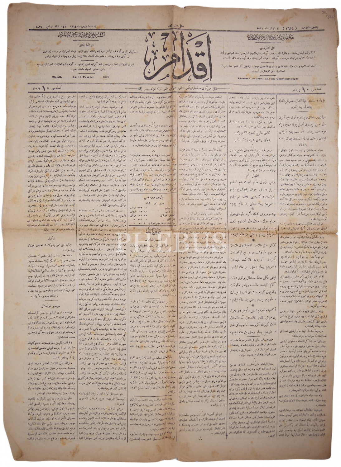 Osmanlıca İkdam gazetesi, 1899, tek sayfa, 46x60 cm