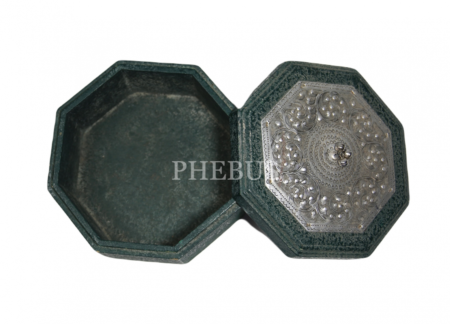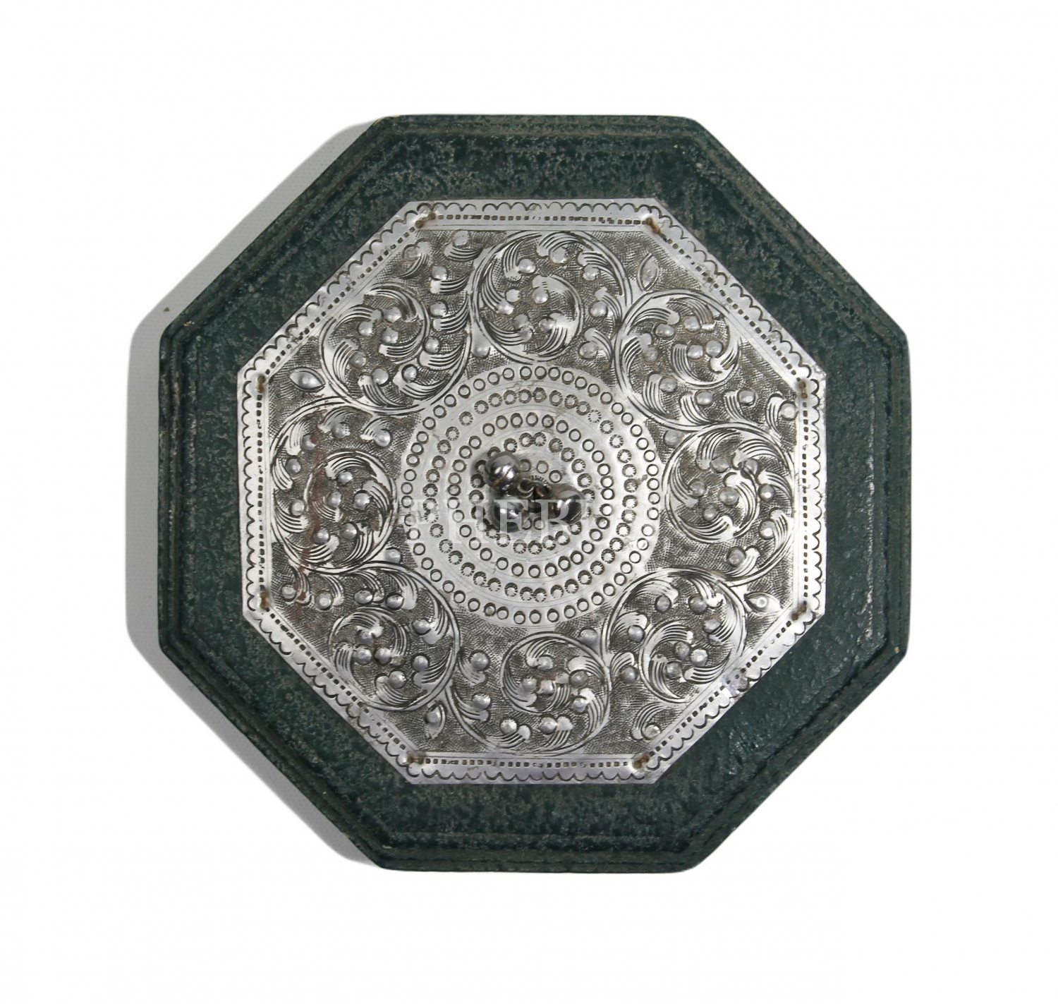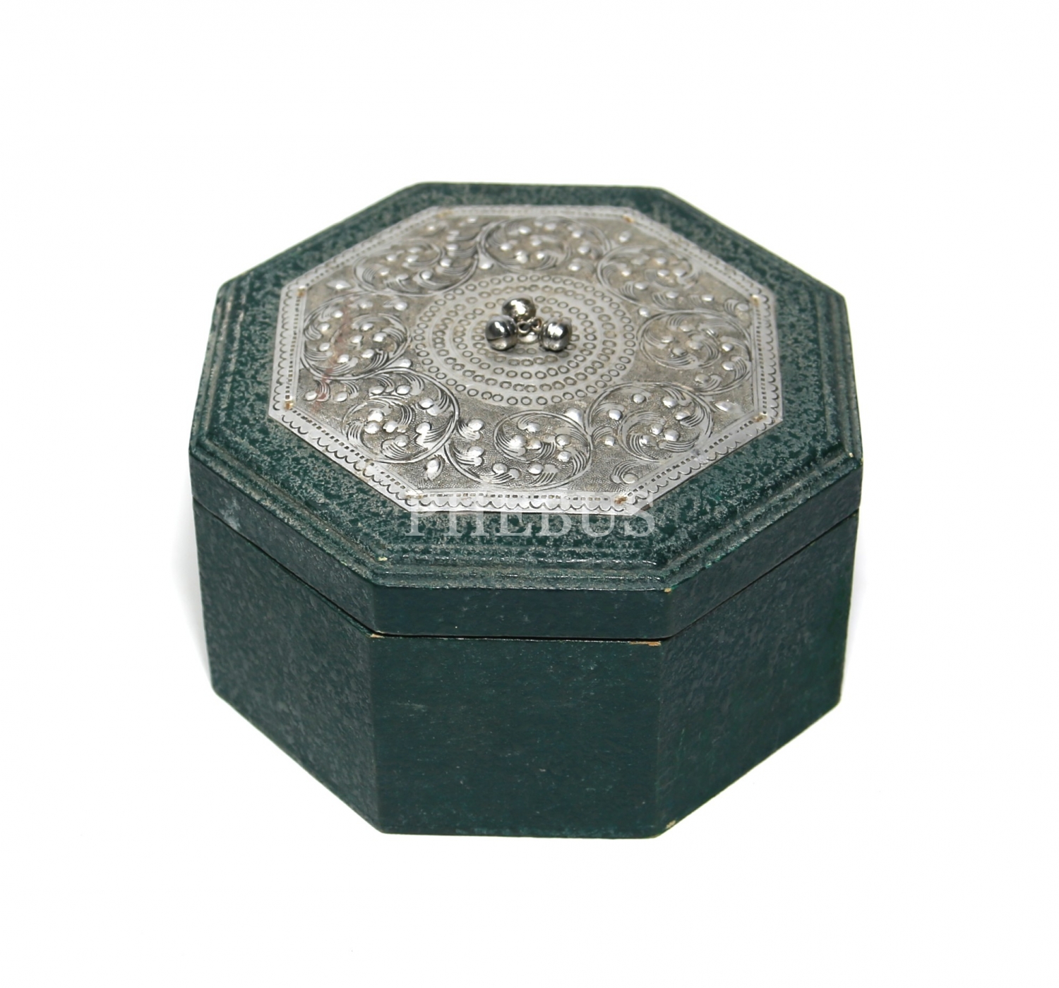 Ahşap üzeri, metal aplikeli kutu, 15x15x9 cm