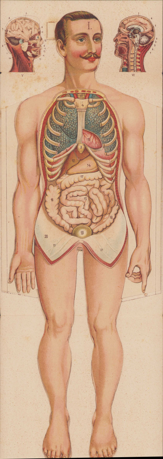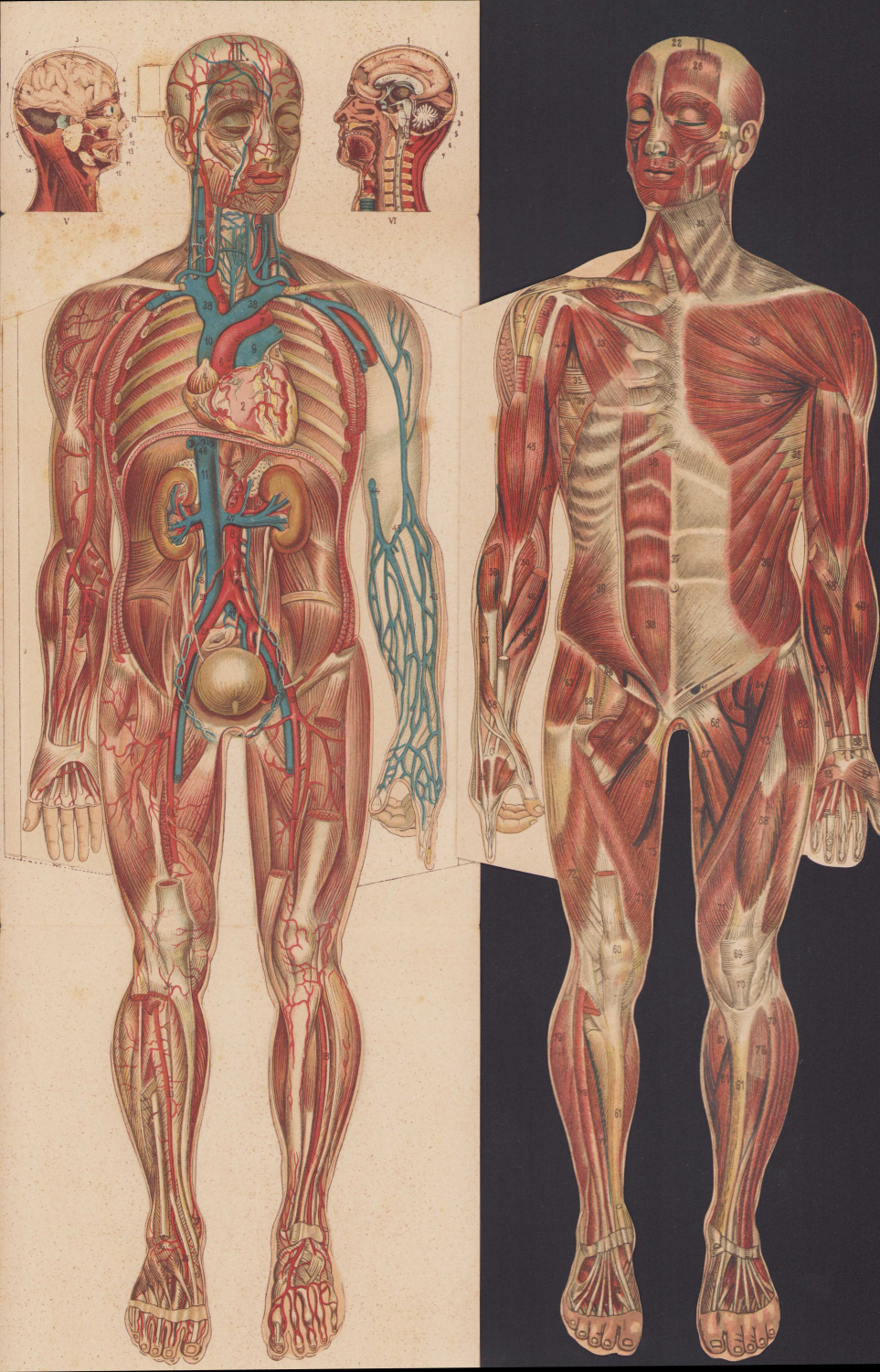 Anatomi atlası, Fransızca yazılı, katlamalı 3 sayfa, 16 x 44 cm