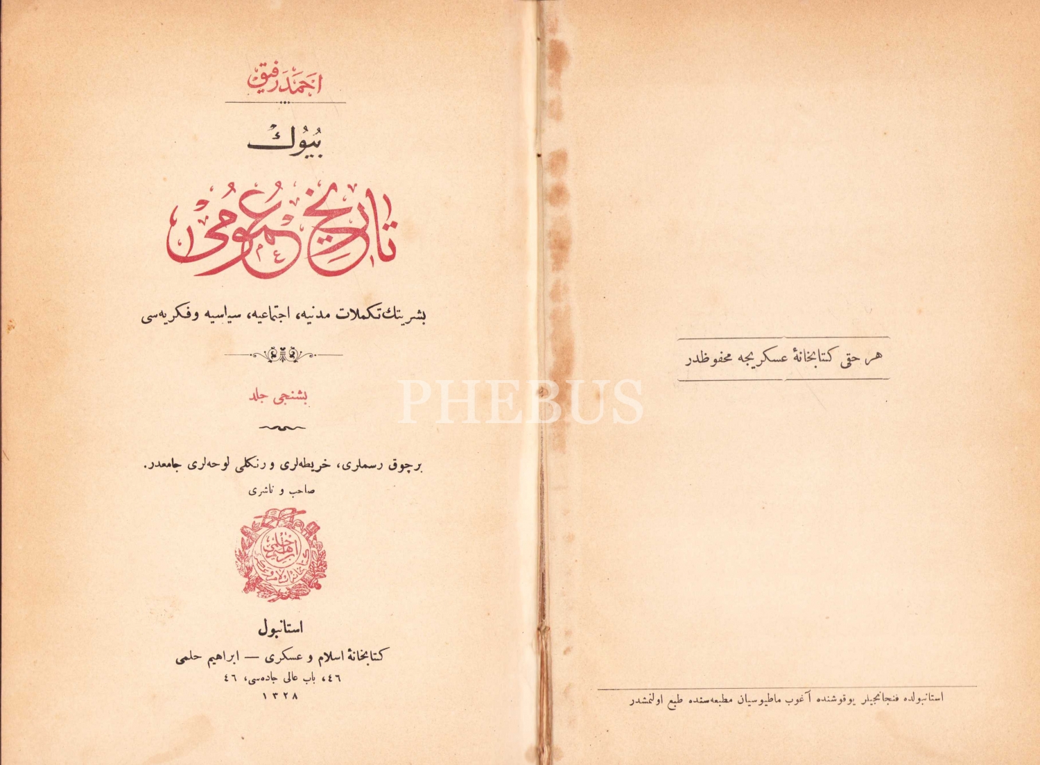 Büyük Tarih-i Umumi, I. ve V. Cild, Ahmed Refik, 1328, Kitabhane-i İslam u Askeri, 472+470 sayfa, 17x25 cm