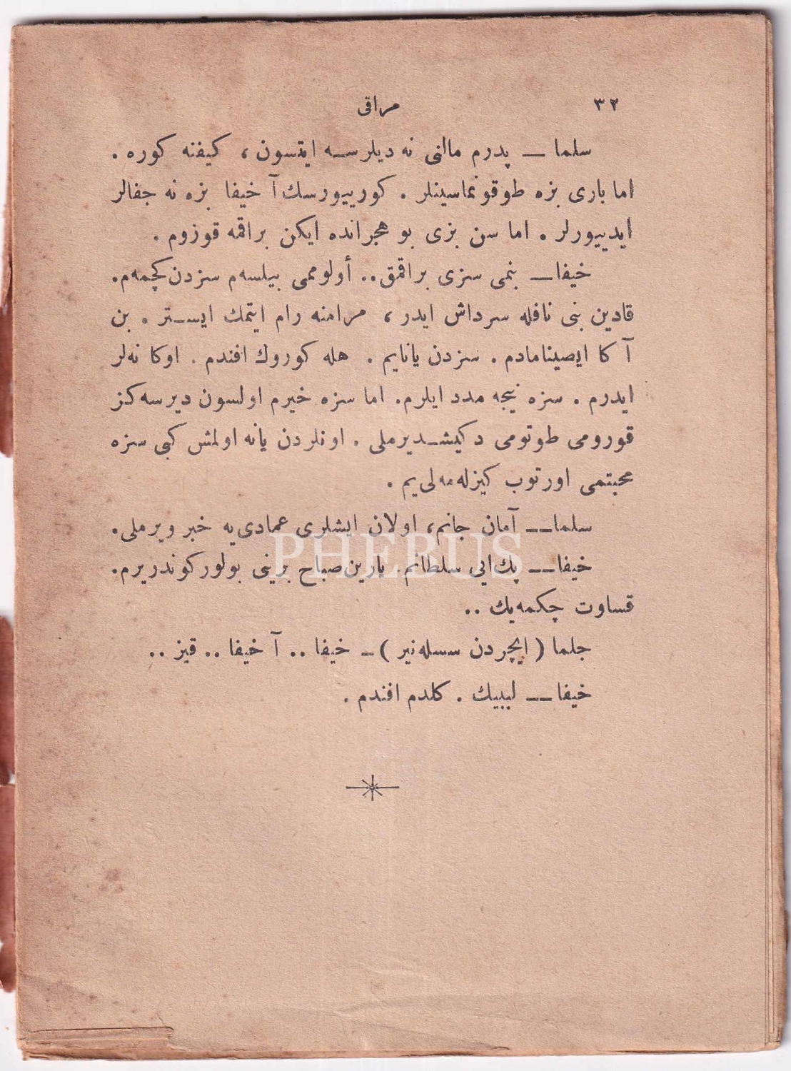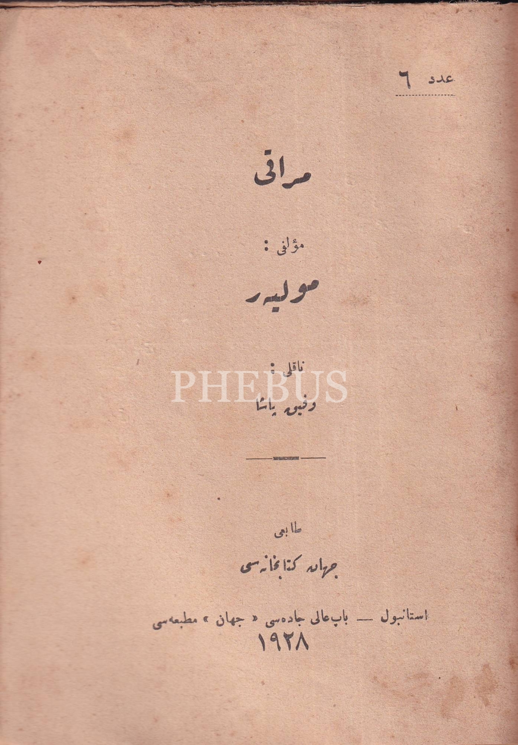 Meraki, Müellifi: Moliere, Nakli: Vefik Paşa, Tabii: Cihan Kitabhanesi, arka kapak eksik, 32 sayfa, Osmanlıca, 12x17 cm