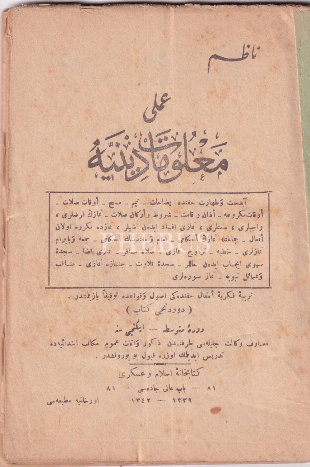 İlmi Malumat-ı Diniyye, Dördüncü Kitab, Kitabhane-i İslam u Askeri, 1342 tarihli, Orhaniye Matbaası, 100 sayfa, Osmanlıca, 13x19,5 cm