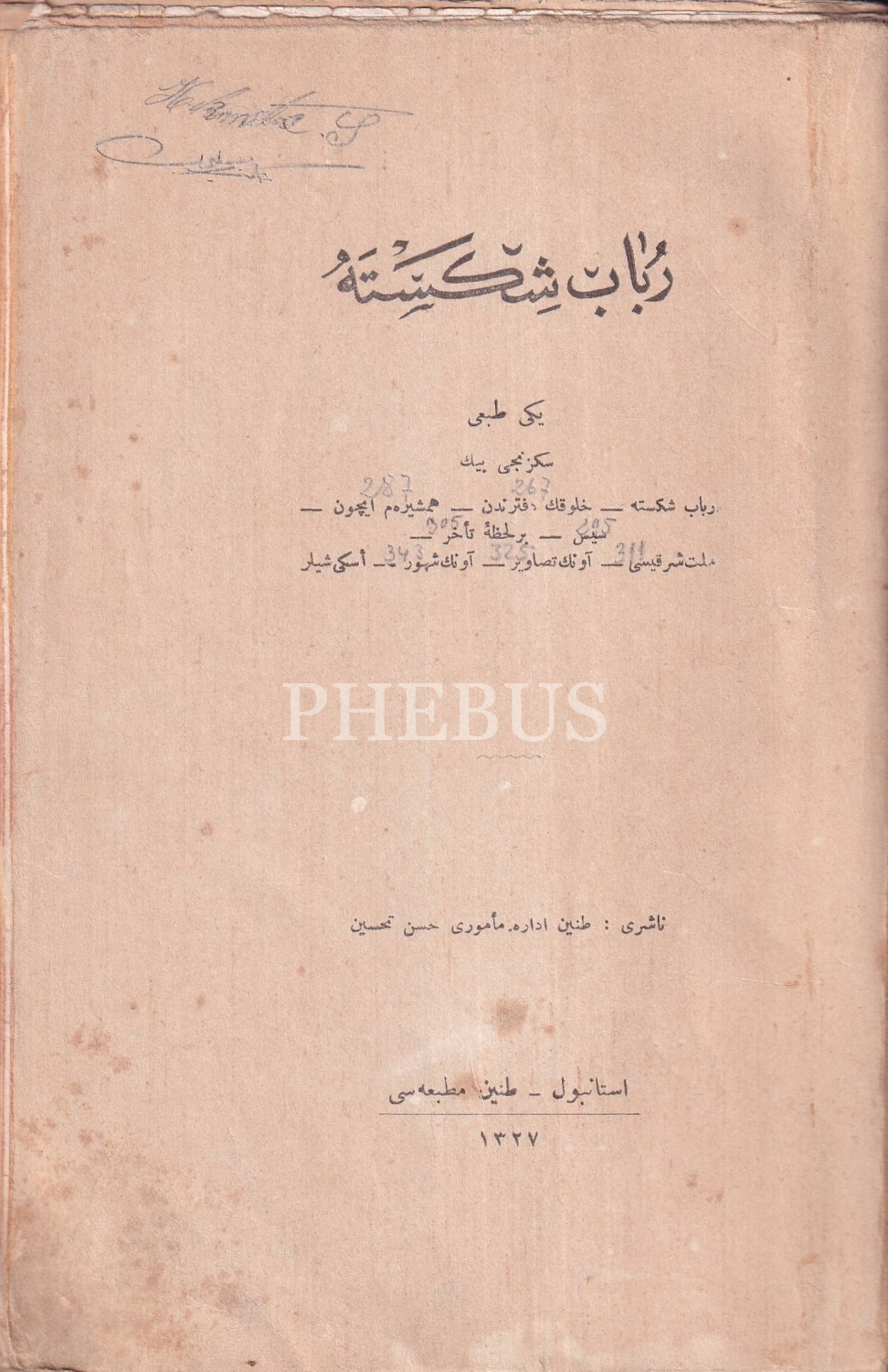 Rübab-ı Şikeste, Tevfik Fikret, Sekizinci Bin, Naşiri: Tanin İdare Memuru Hüseyin Tahsin, İstanbul, Tanin Matbaası, 1327 sayfa, 427 sayfa, Osmanlıca, 12x19 cm