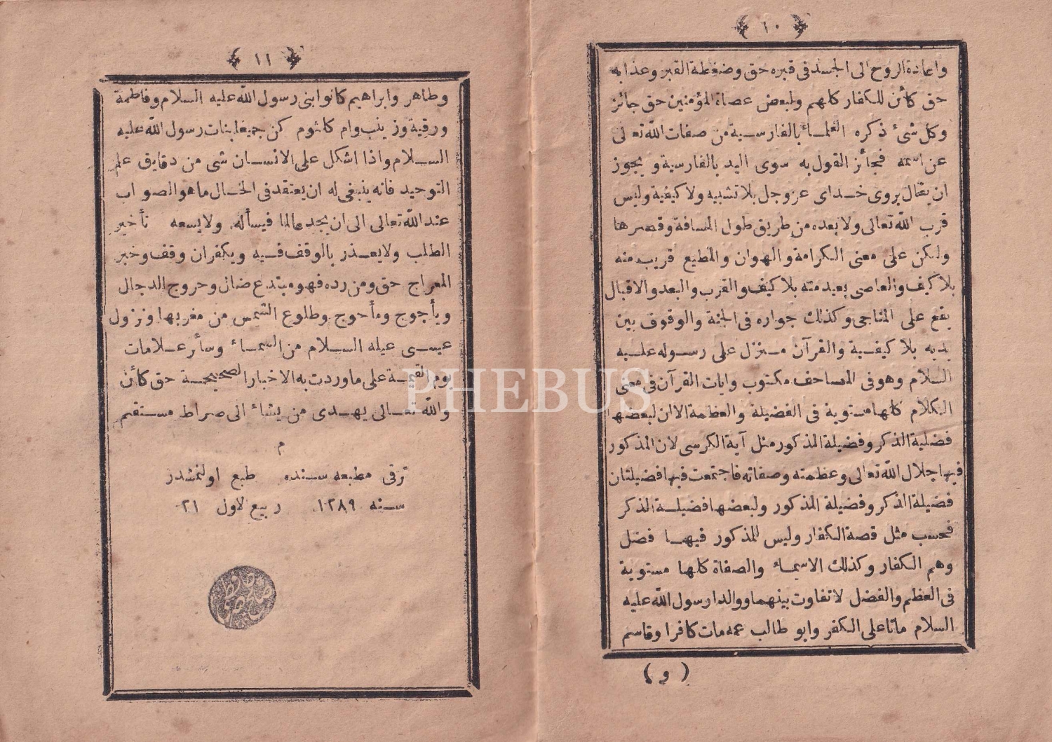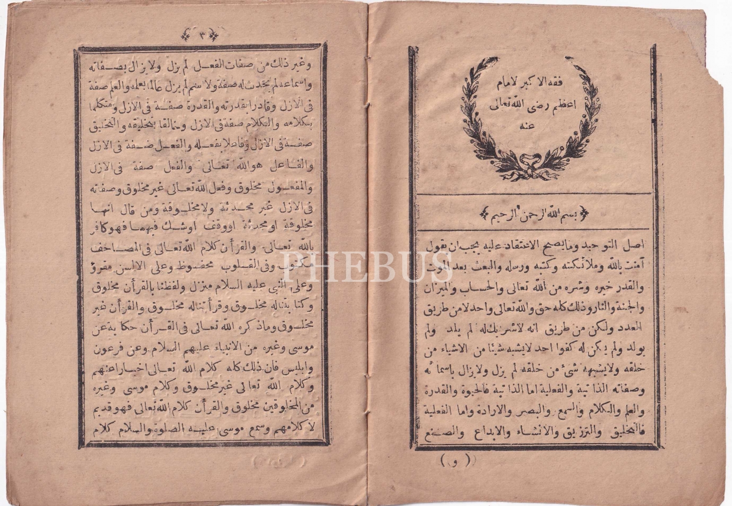 Fıkhü'l Ekber İmam-ı Azam, Terakki Matbaası, 1289 tarihli, 11 sayfa, Arapça, 11x15,5 cm
