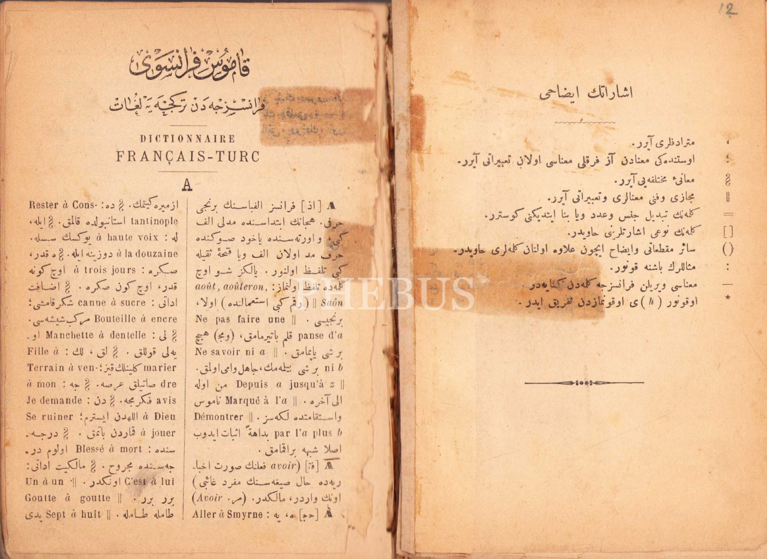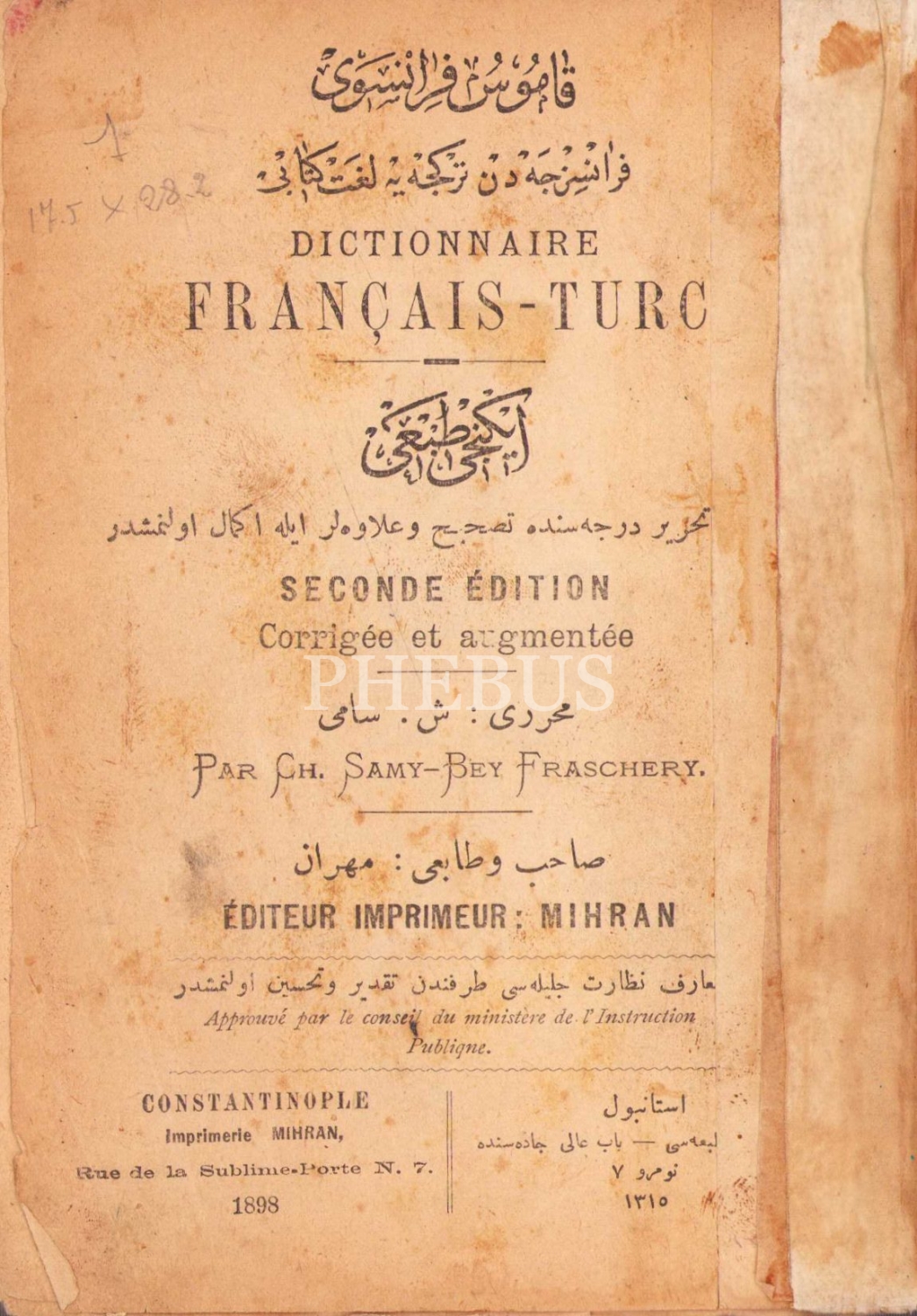 Kamus-ı Fransevi, Fransızca'dan Türkçe'ye Lugat Kitabı, Şemseddin Sami, İkinci Tab'ı, Sahibi ve Tabii: Mihran, İstanbul, 990 sayfa, Osmanlıca, 11x16 cm