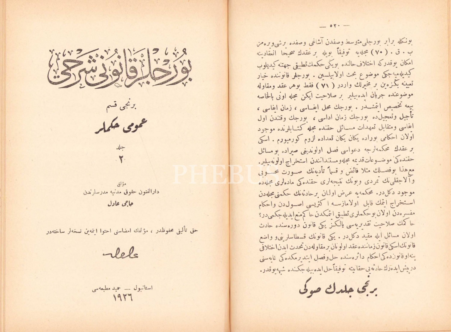 Borçalar Kanunu Şerhi, Birinci Kısım İkinci Cild, Hacı Adil, Osmanlıca, 13,5x20,5 cm