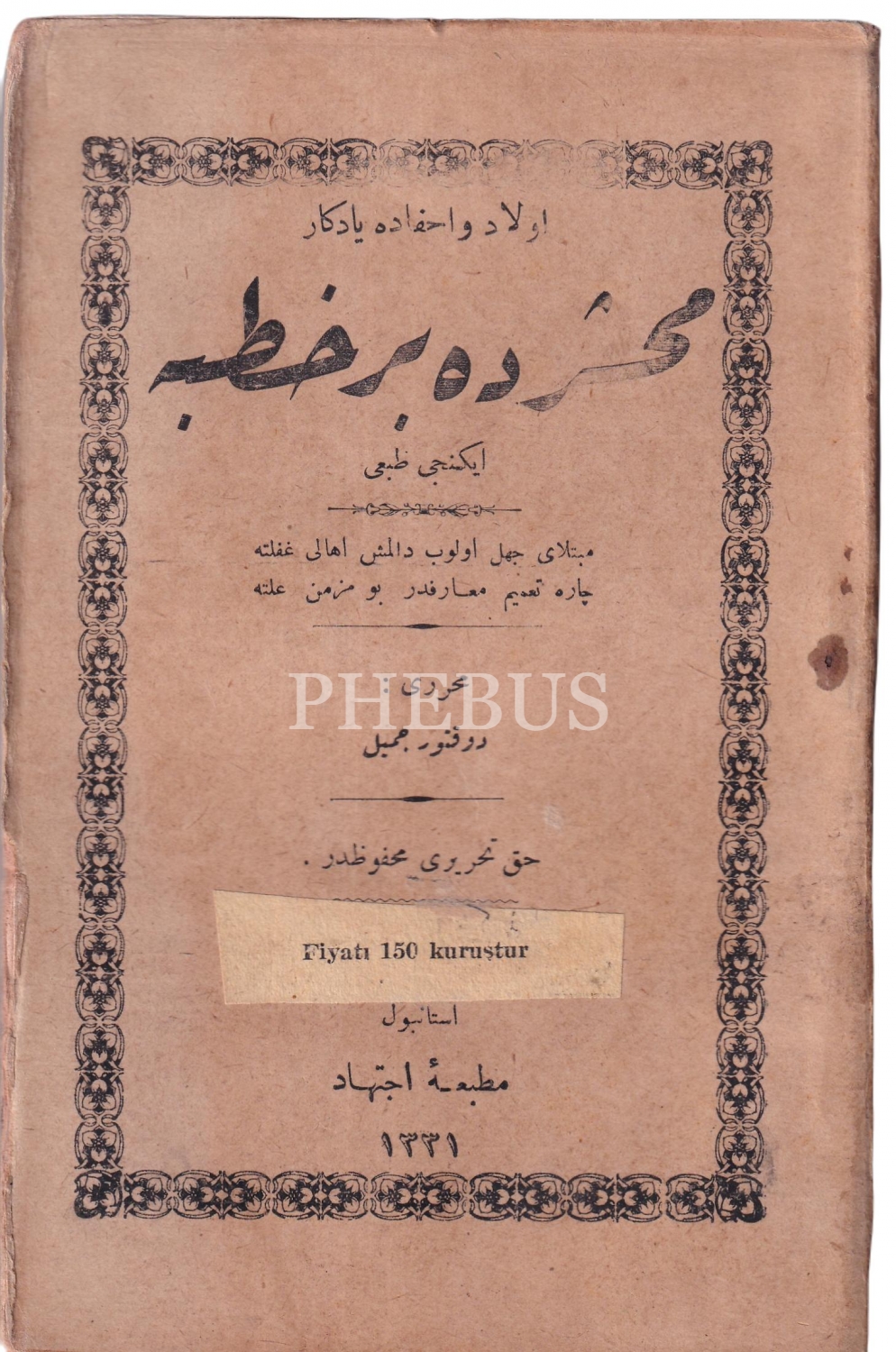 Evlad u Ahfada Yadigar Mahşerde Bir Hutbe, İkinci Tab'ı, Muharriri: Doktor Cemil, İstanbul, Matbaa-i İctihad, 1331 tarihli, 190 sayfa, 12x18,5 cm