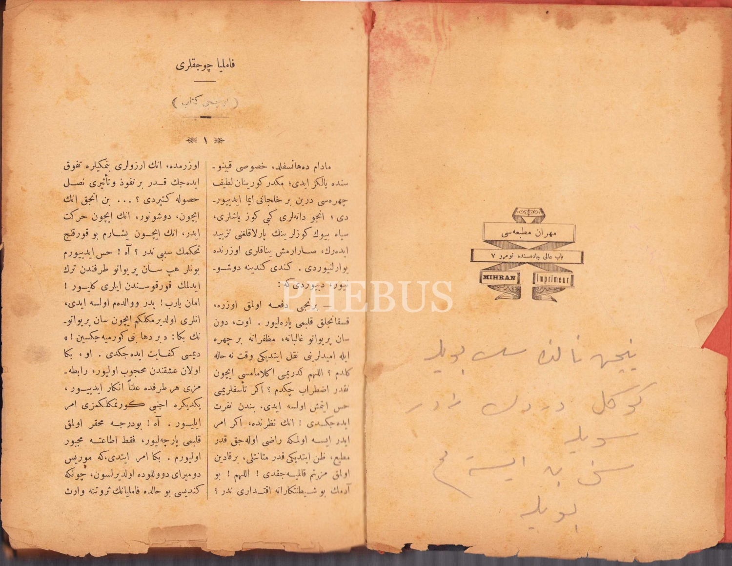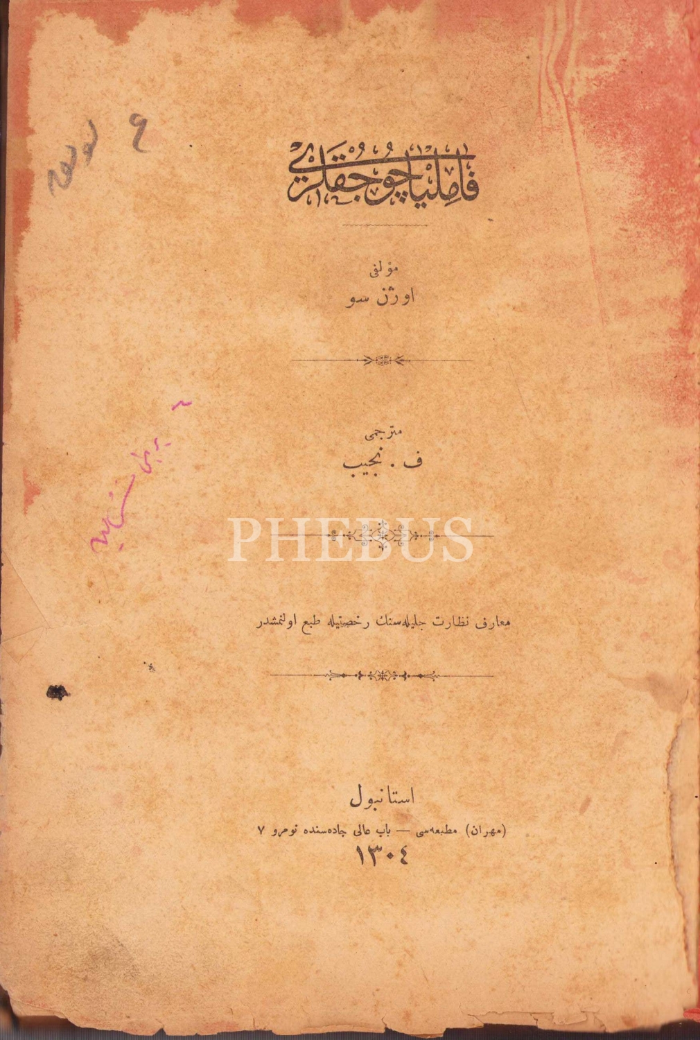 Familya Çocukları, Üçüncü Kitab, Müellifi: Ojen Su, Mütercimi: F. Necib, İstanbul, Mihran Matbaası, 1304 tarihli, 280 sayfa, Osmanlıca, 16x22 cm