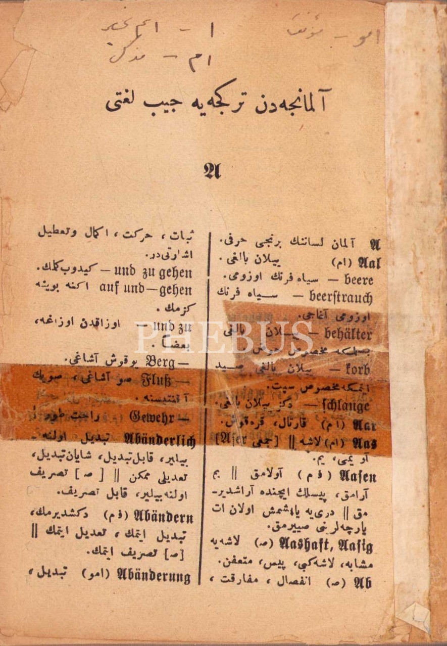 Almanca'dan Türkçe'ye Cep Lugati, Osmanlıca, ilk sayfası tamirli, 1082 sayfa, 9,5x13 cm