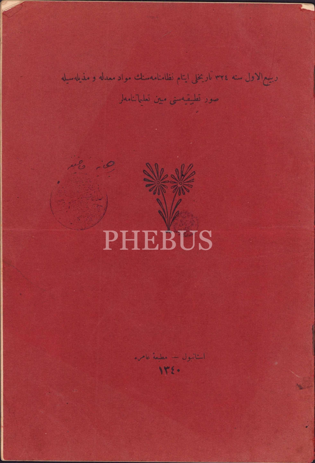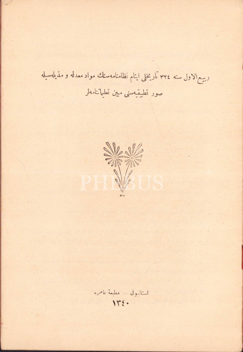 Rebiü'l Evvel Sene 324 Tarihli Eytam Nizamnamesini Mübeyyin Talimatnameler [Yetimler Nizamnamesinin Açıklayan Talimatnameler], İstanbul, Matbaa-i Amire, 1340 tarihli, 24 sayfa, Osmanlıca, 16x24 cm