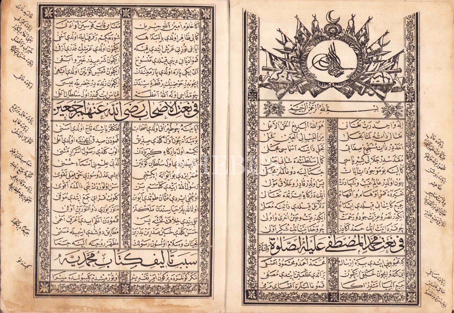 Kitab-ı Muhammediye Fi Kemalati'l Ahmediye, Taş Baskı, Bosnavî Hacı Muharrem Efendi’nin Taş Destgâhı, Mustafa Şükrü ketebeli, fihrist sayfaları haliyle, 1280 tarihli, ÖZEGE; 10955.