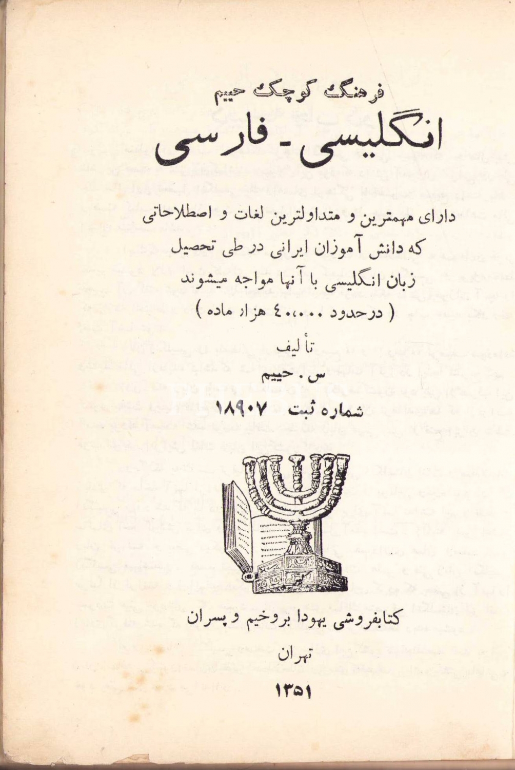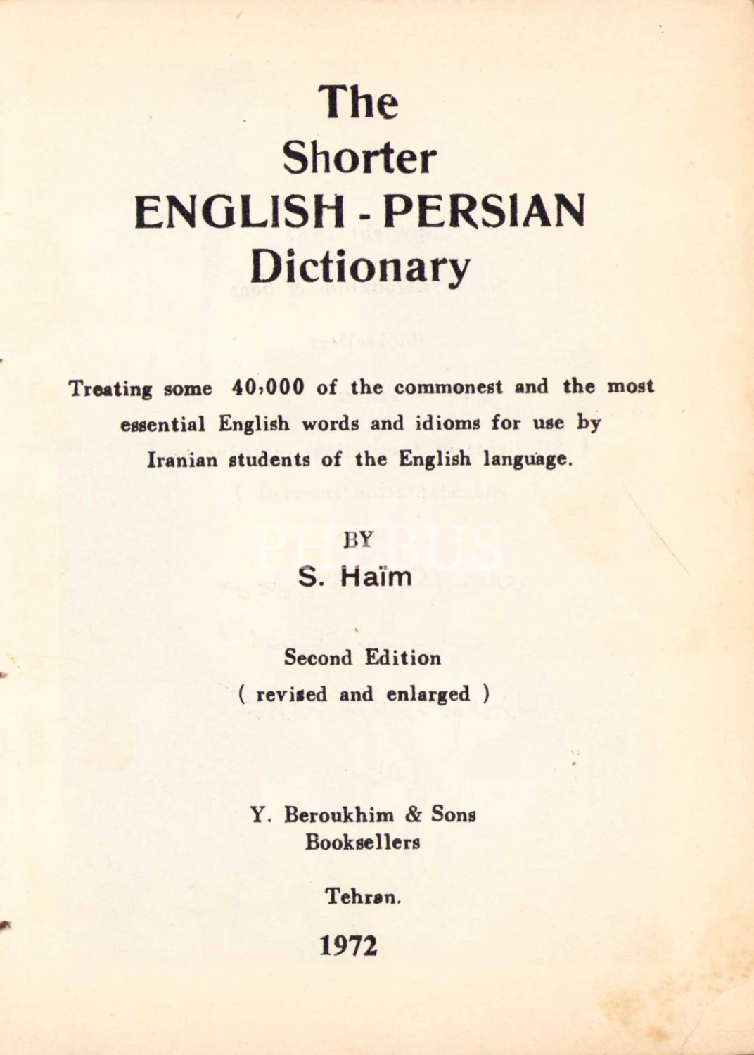 İngilizce-Farsça Sözlük, Telif: S. Hayim, Tahran Baskı, 750 sayfa+48 sayfa, 13x17 cm