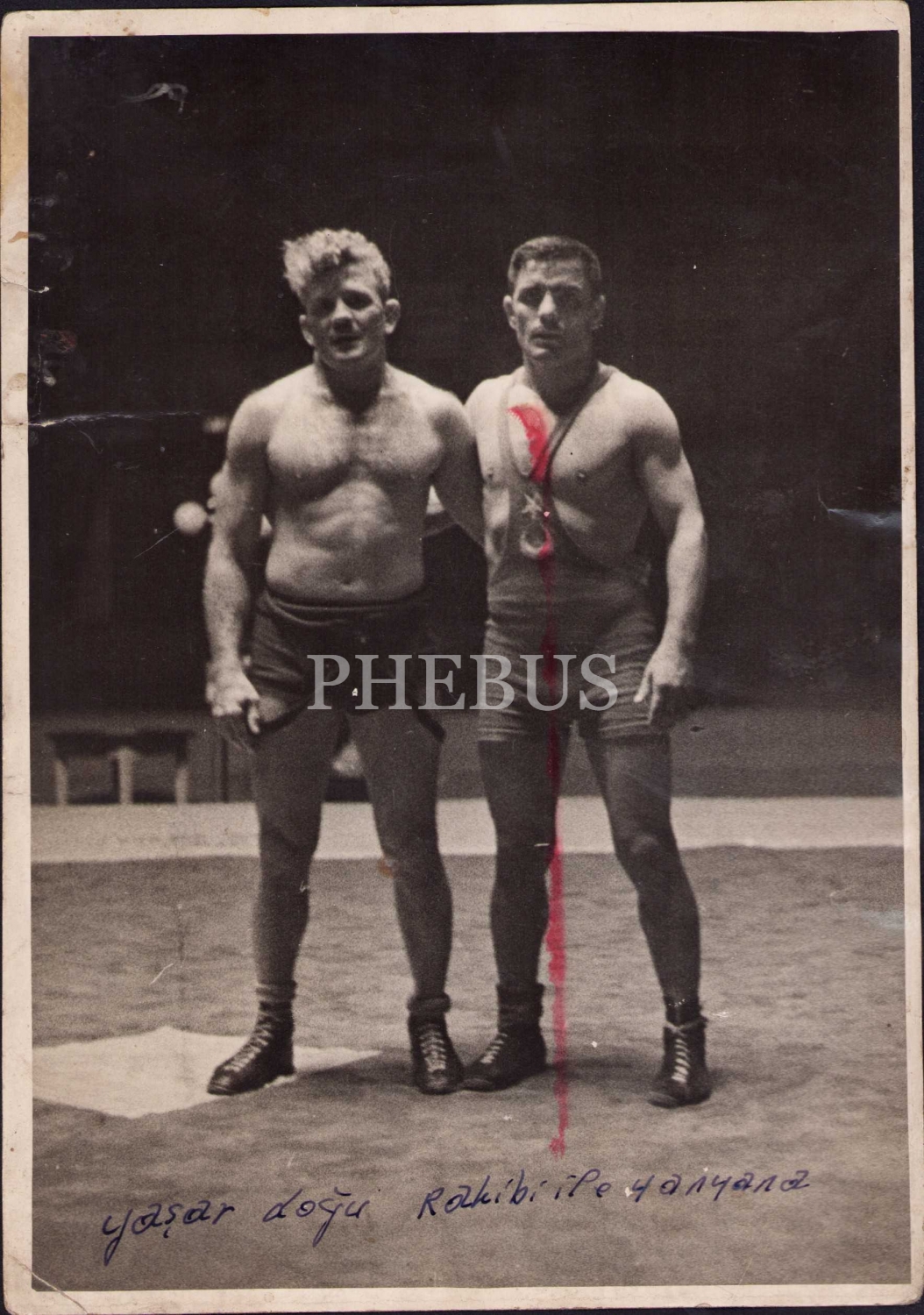 Yaşar Doğu rakibi ile yanyana, 15x20 cm