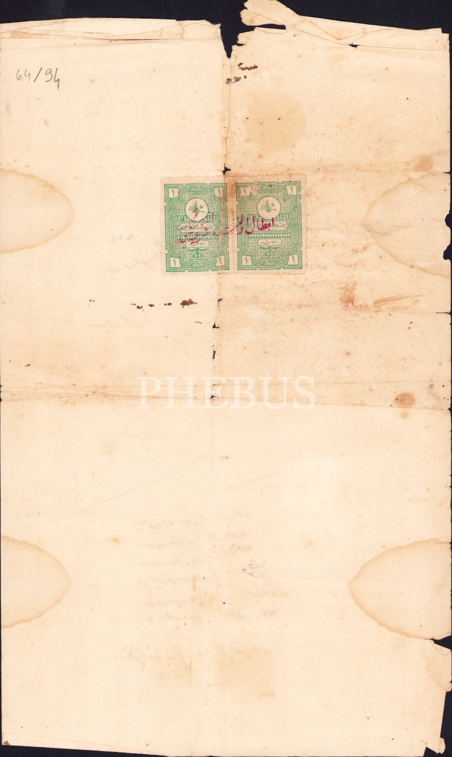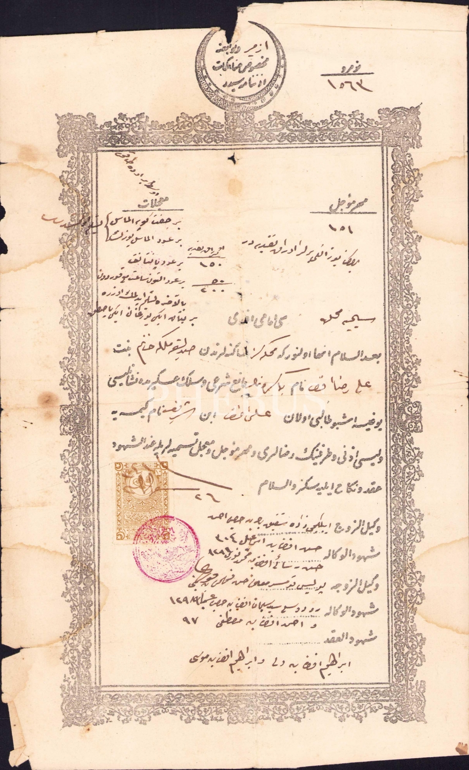 Osmanlıca İzmir Vilayetine Mahsus münekahat [evlilik izinnamesi] belgesi, Sıdıka Melek hanım - Ali Efendi, 1341, haliyle, 20x32 cm
