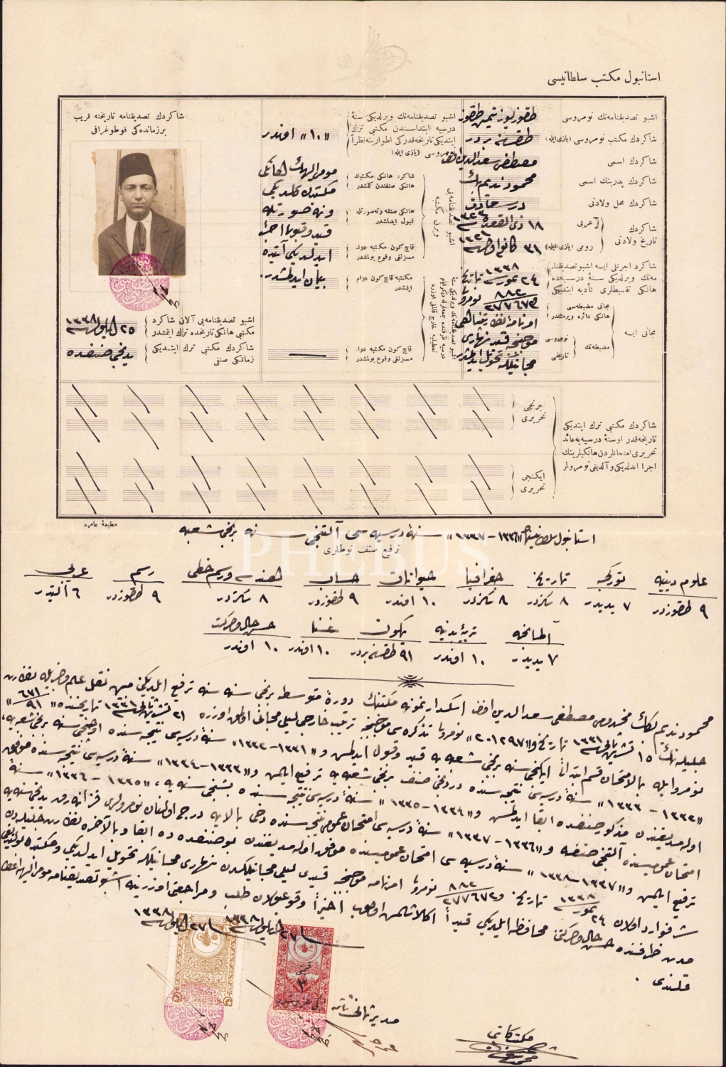 Osmanlıca İstanbul Mekteb-i Sultanisi talebe terfi belgesi, 1338, 28x40 cm