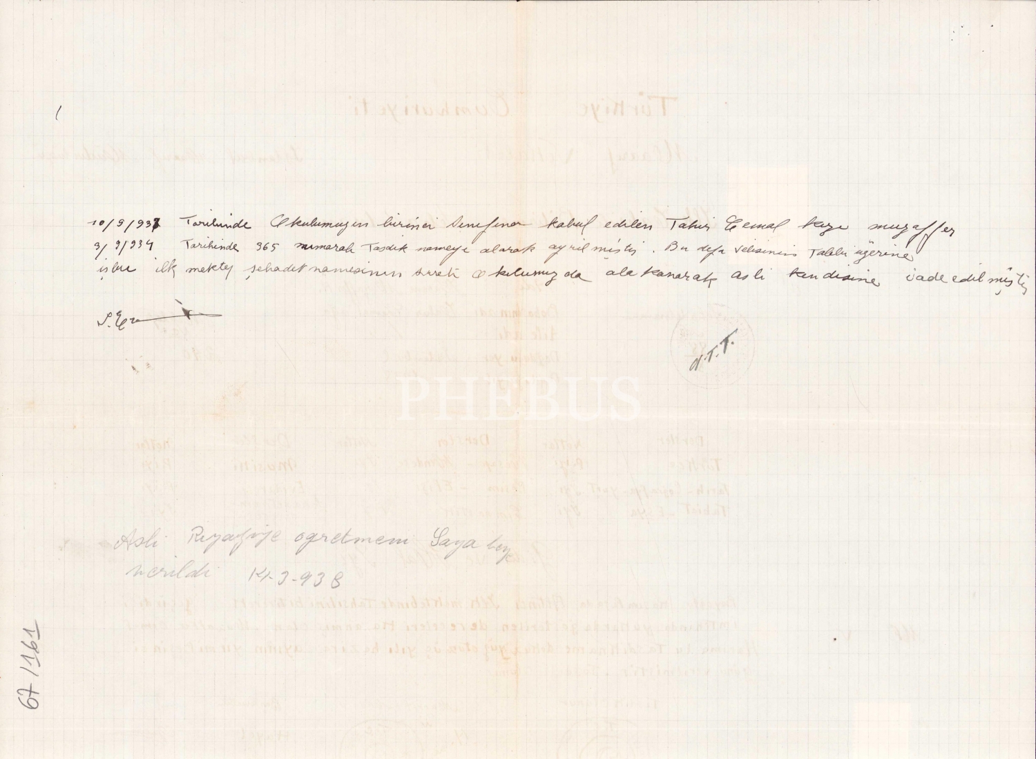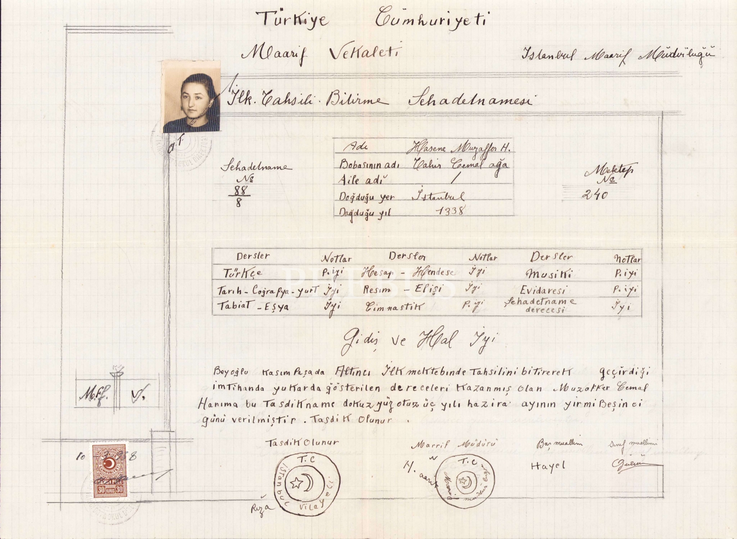 Beyoğlu Kasımpaşa Altıncı İlk Mektebi İlk Tahsili bitirme şehadetnamesi, el yapımı, 1933, 41x33 cm