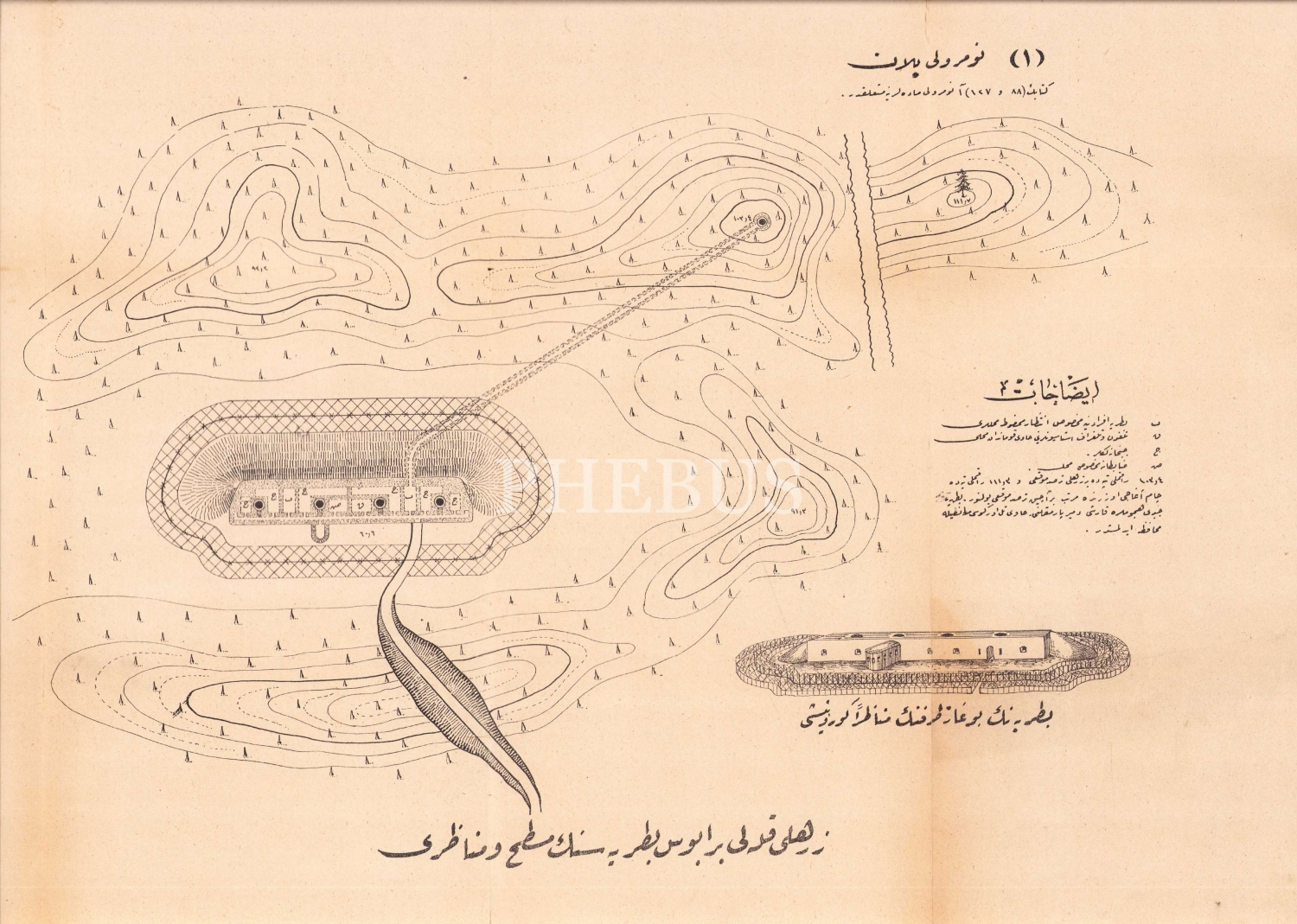 Osmanlıca Zırhlı Kaleli Obüs Bataryasının Menazırı Planı, 44x33 cm