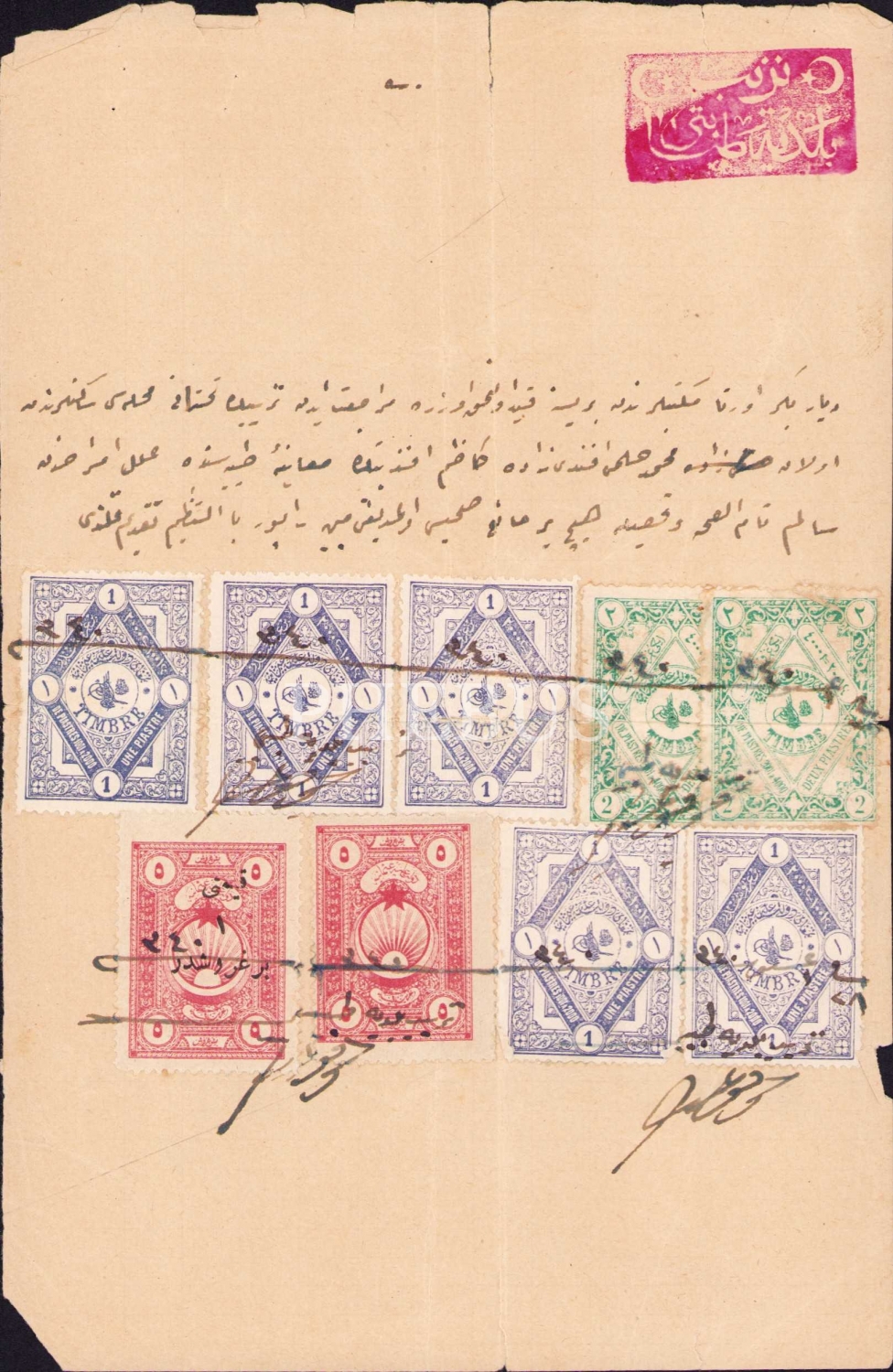 Mehmed Hilmi Kazım Bey'in Diyarbakır Orta Mektebine kaydı için aldığı sağlık raporu,1340, tamirli, 13x20 cm