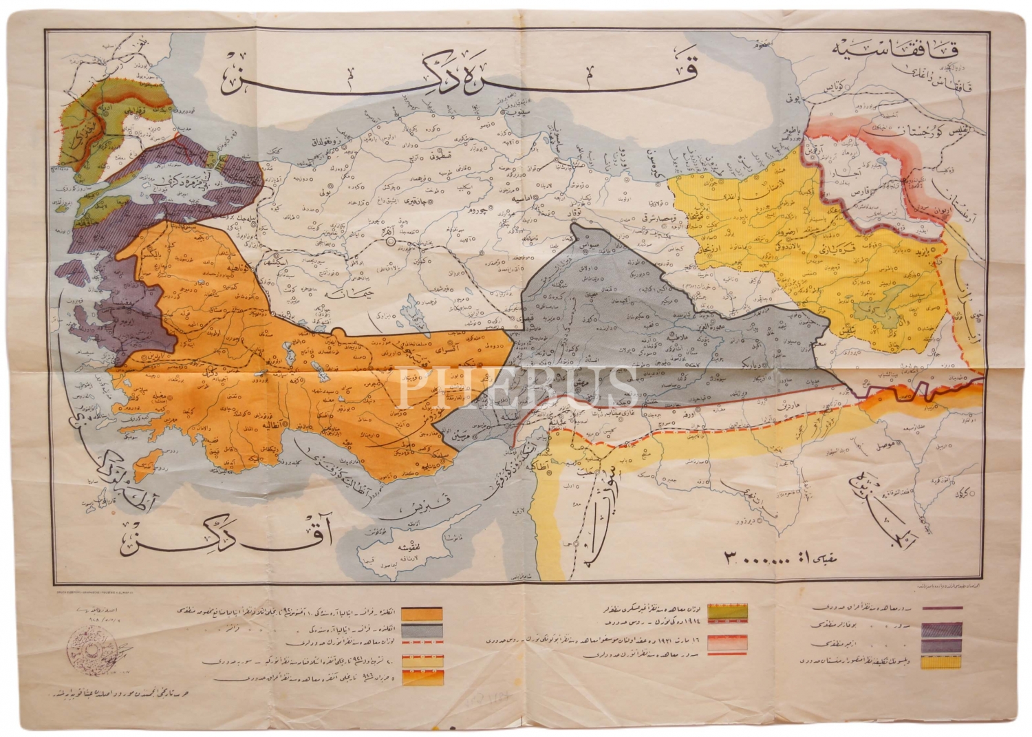 Osmanlıca Türkiye haritası, Ahmed İhsan Matbaası, 1928, 60x43 cm