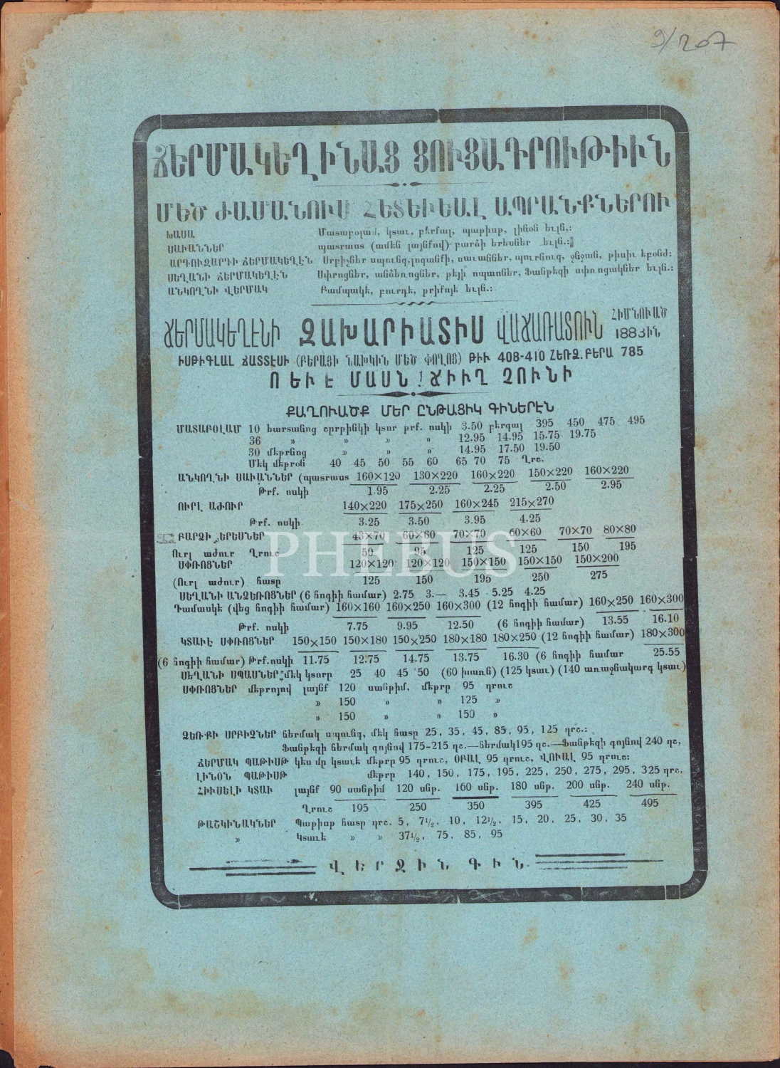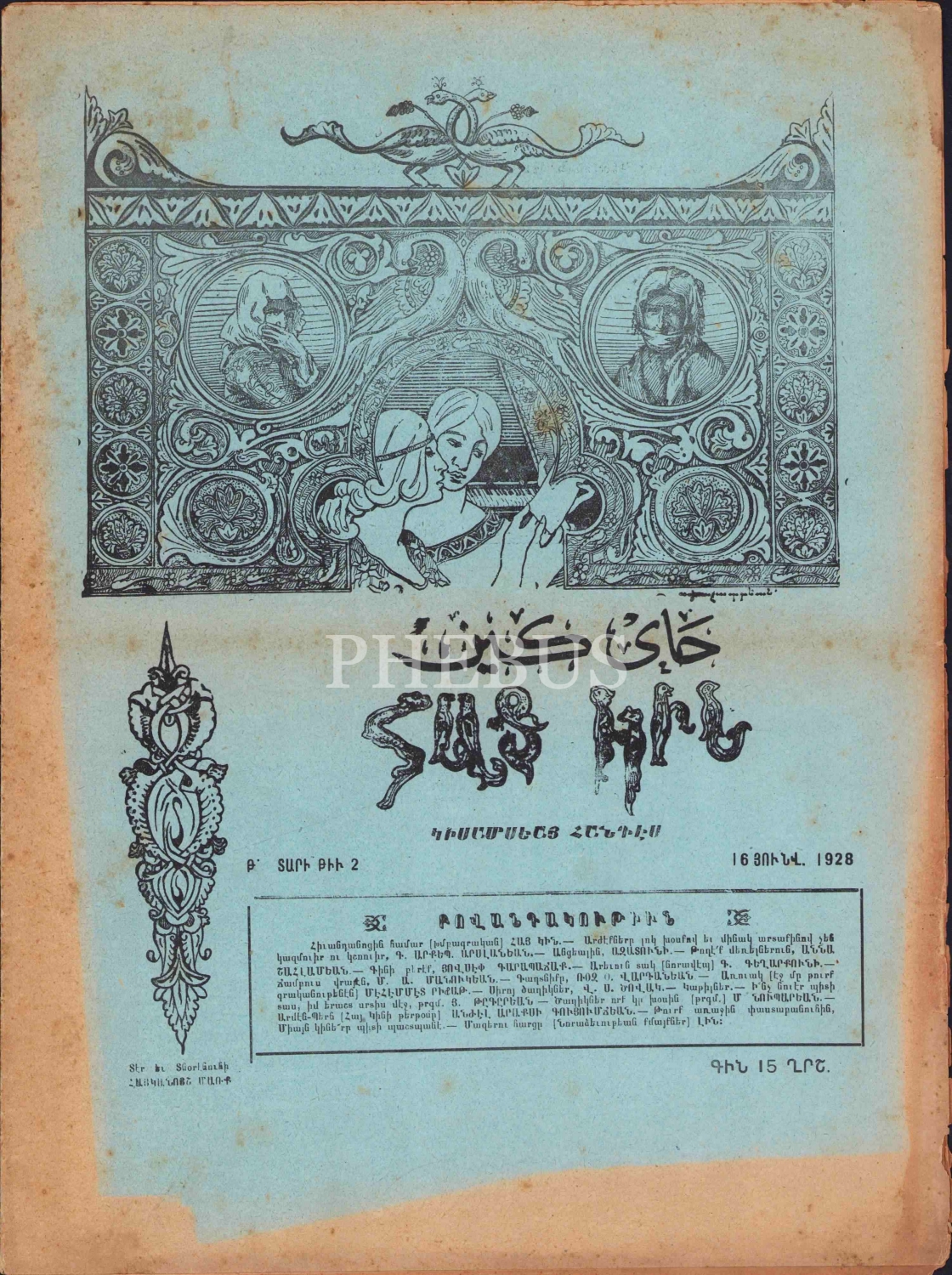 1928 tarihli Ermenice Hay Gın Kadın mecmuası, İmtiyaz sahibi Hayganus Mark, 16 sayfa, 24,5x34 cm.