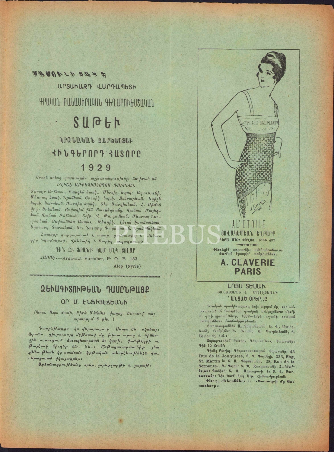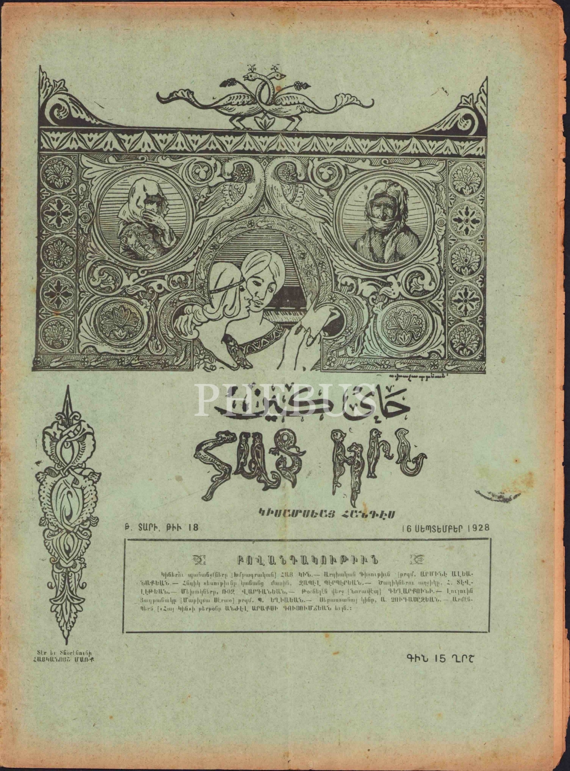 1928 tarihli Ermenice Hay Gın Kadın mecmuası, İmtiyaz sahibi Hayganus Mark, 16 sayfa, 24,5x34 cm.
