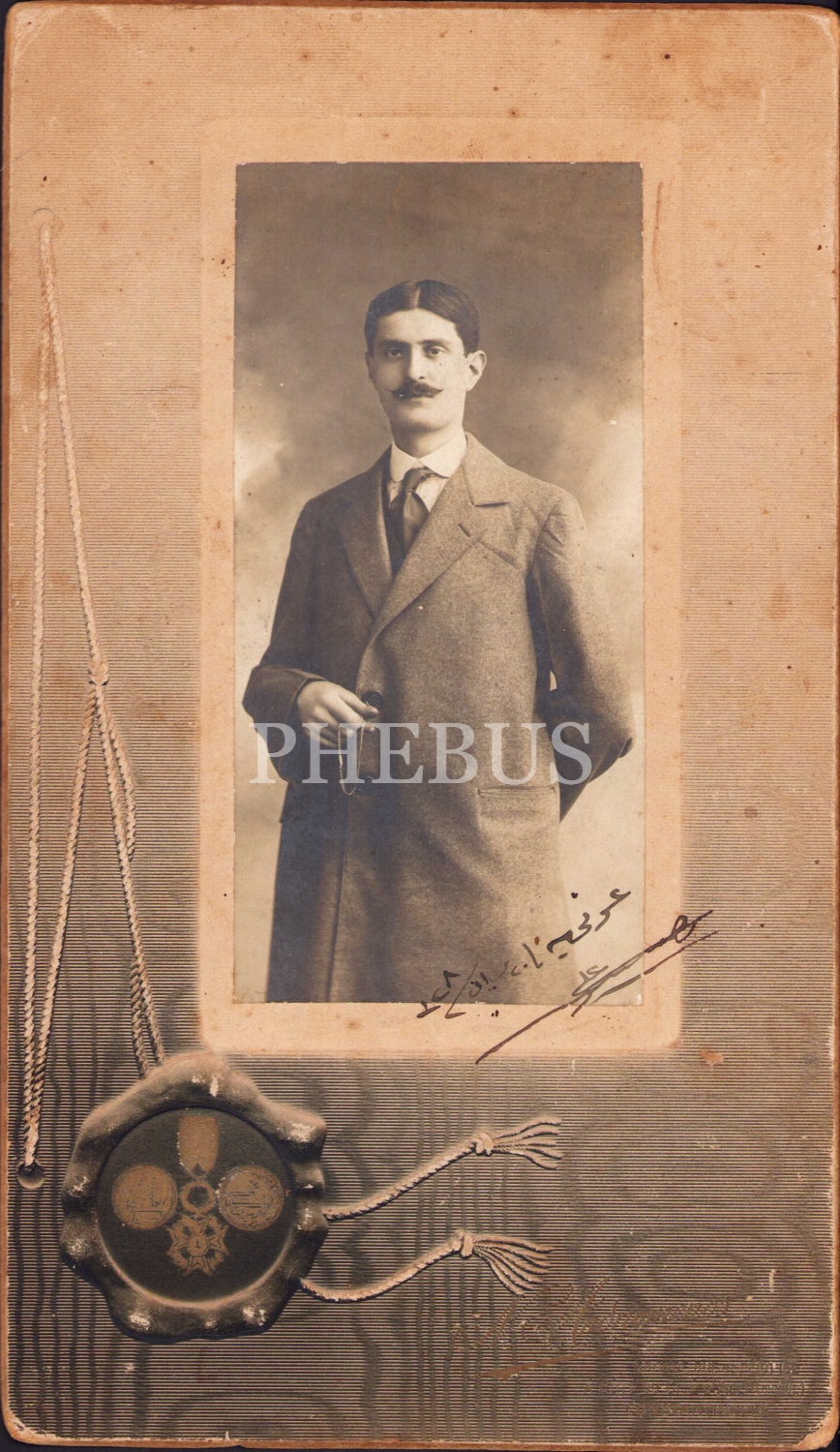 Photo N. Andriomenos kabin fotoğrafı, erkek tip, Osmanlıca ithaflı 1328, 7x14 cm