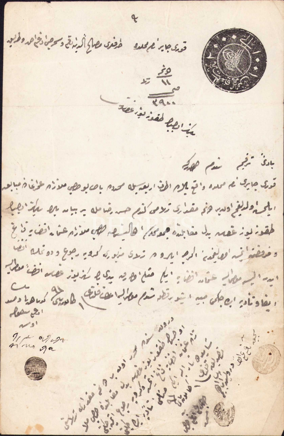 Osmanlıca senet, Kuruçeşmede, Hacı Molla Zade Ömer Efendinin tarlasını Cuma mahallesinde ikamet eden Hacı Molla Osman'a satışına dair, Ermeni mühürlü, 14x21 cm