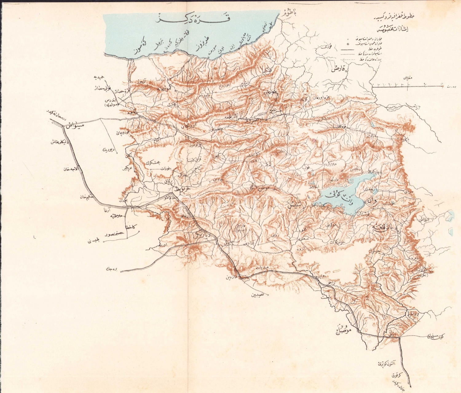 Osmanlıca Türkiye Doğu Anadolu haritası, 31x27 cm