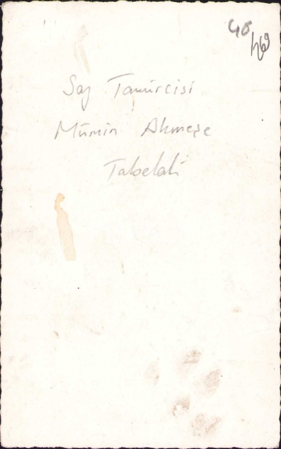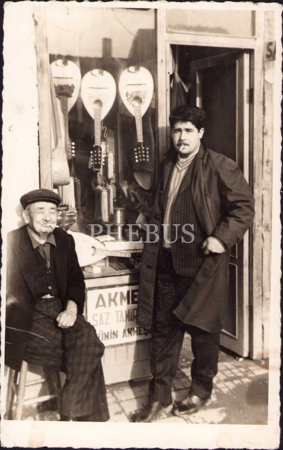 Saz Tamircisi Mümin Akmeşe Tabelası önünde hatıra, 13x8 cm