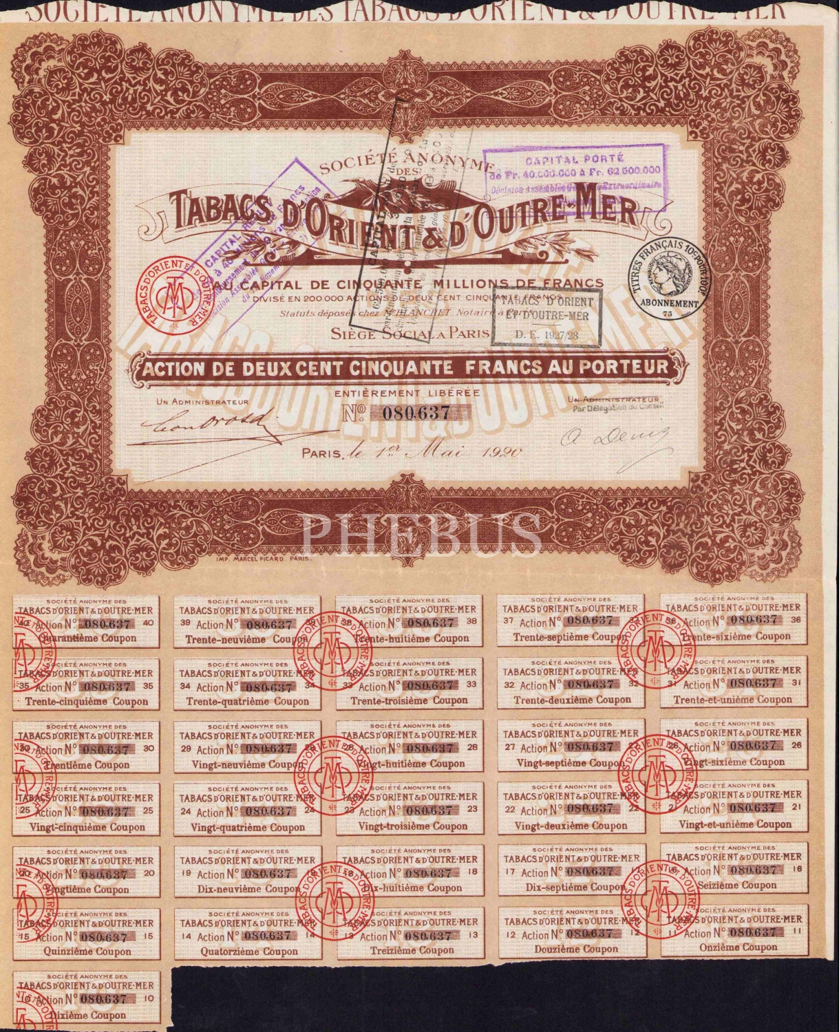 Fransızca hisse senedi, Tabacs D'Orient & D'Outre - Mer, 1920, 30x34 cm