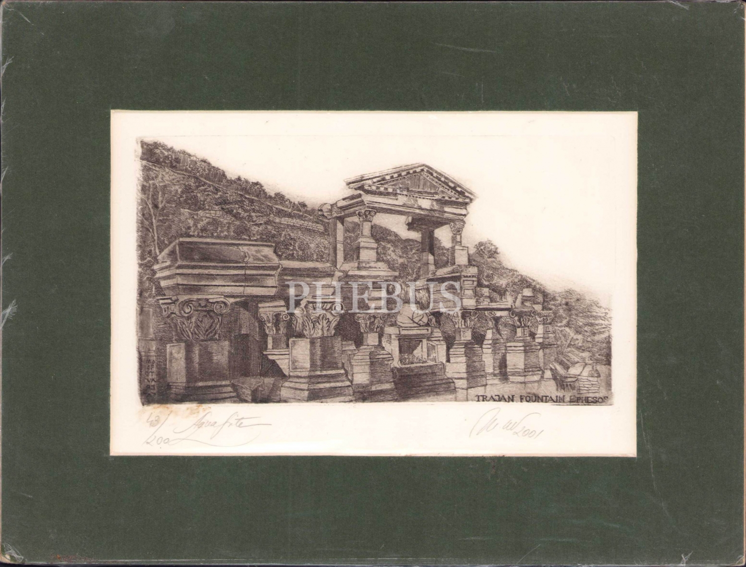 İzmir Trajan Çeşmesi gravür, 16x11 cm