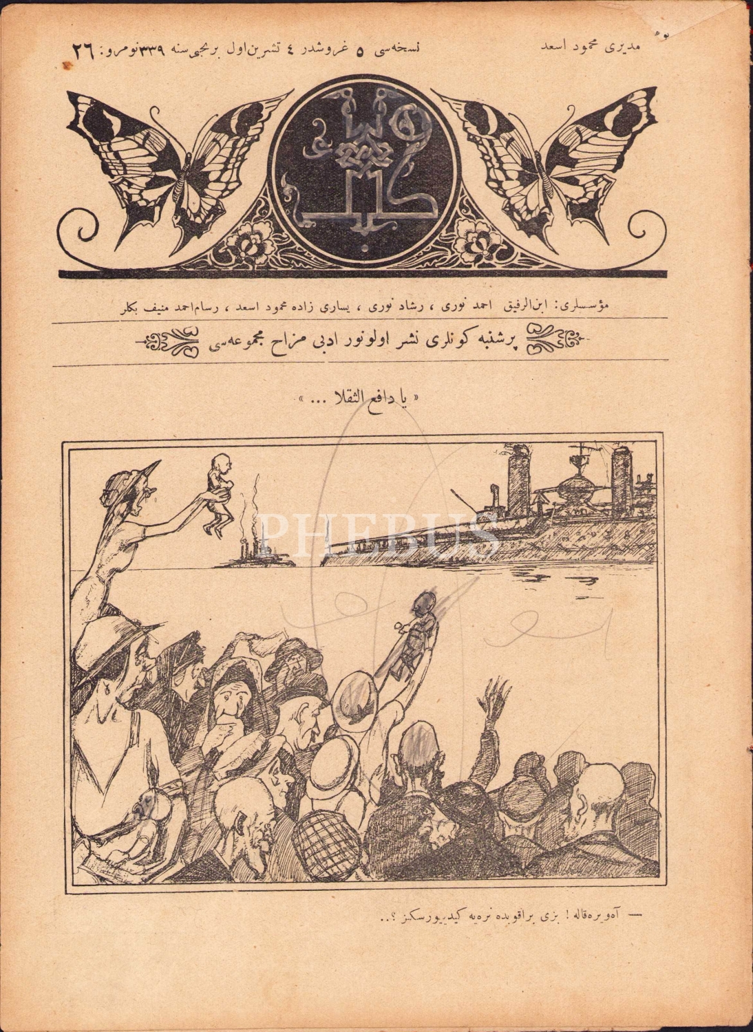 Osmanlıca Kelebek Mecmuası, Müdiri: Mahmud Esad, 1339 tarihli, 26 numara, 16 sayfa, 20x27 cm.