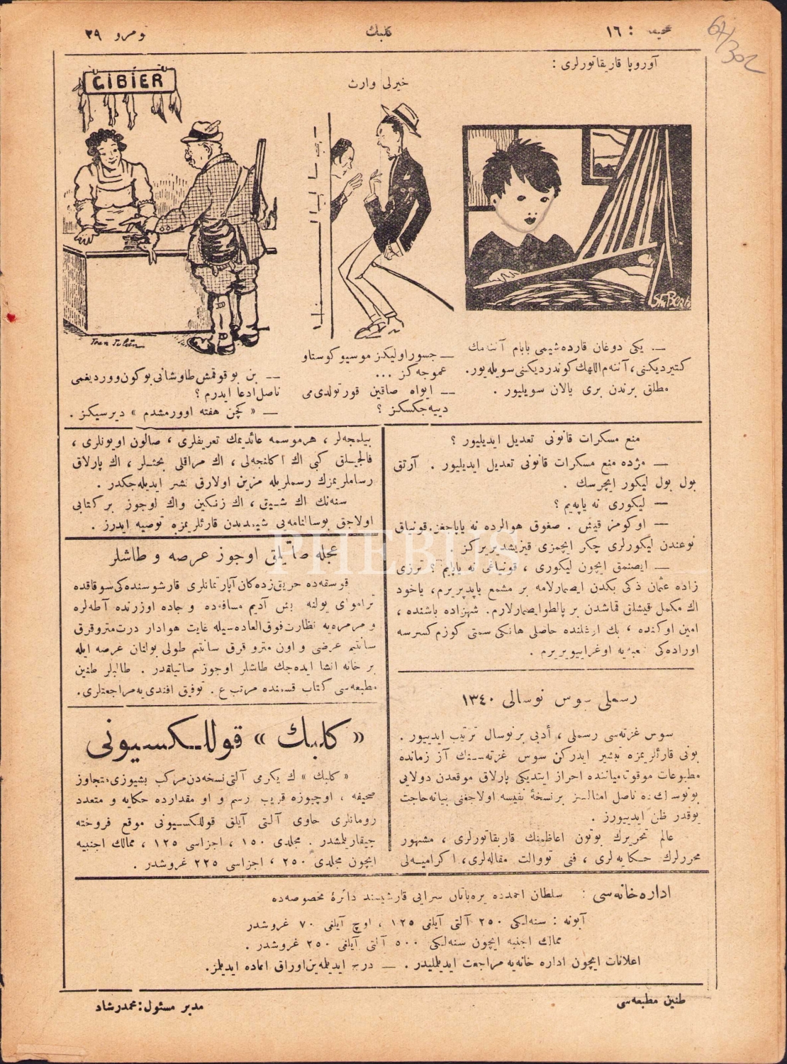Osmanlıca Kelebek Mecmuası, Müdiri: Mahmud Esad, 1339 tarihli, 26 numara, 16 sayfa, 20x27 cm.