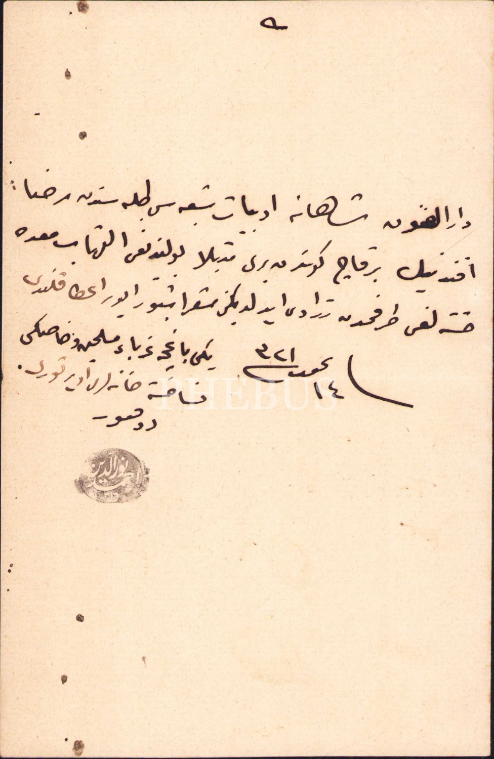 Osmanlıca Darülfünun Şahane Edebiyat Şubesi talebelerinden Rıza Efendiye ait mazeret belgesi, 1321, 12x20 cm