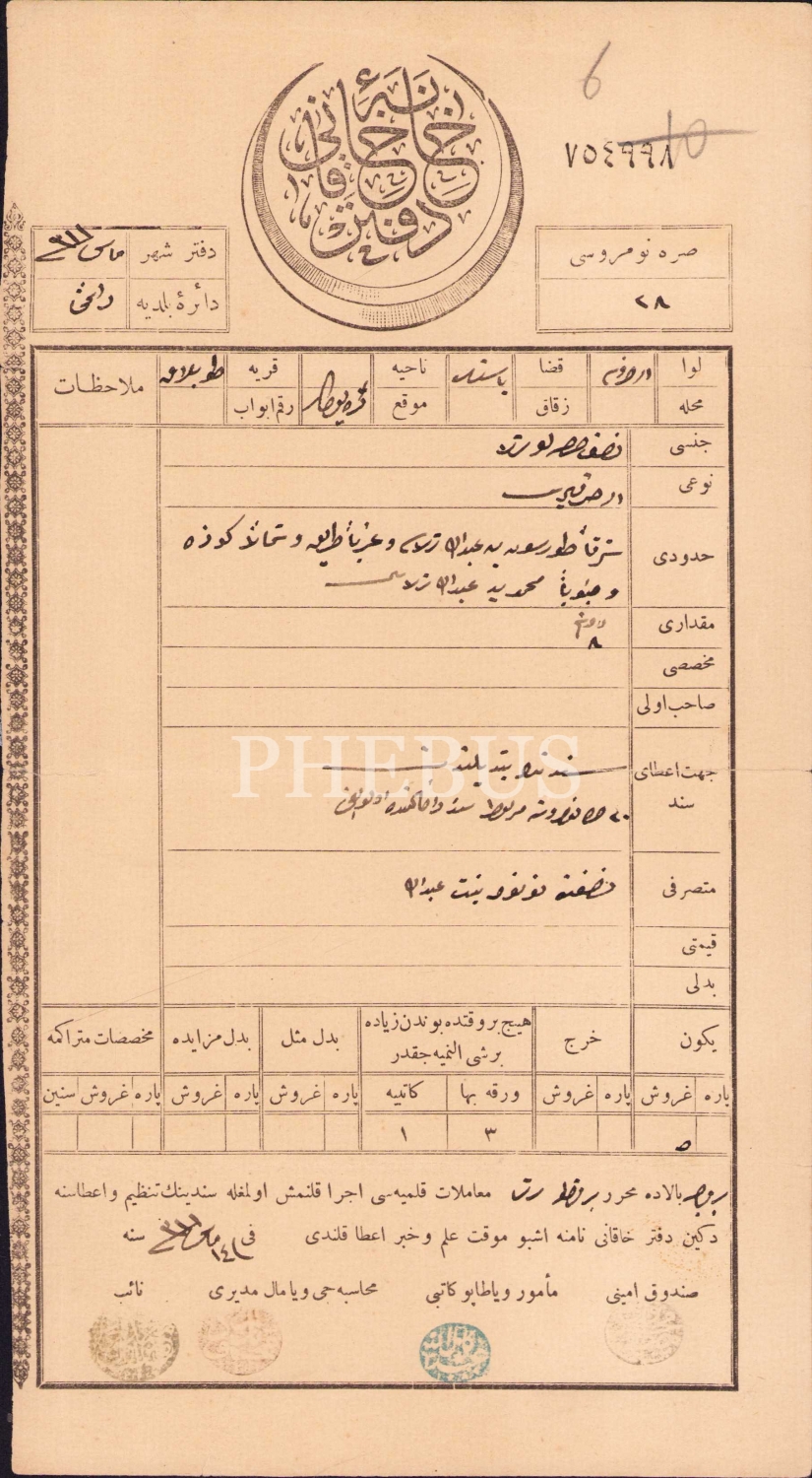 Osmanlıca tapu, Erzurum, 1311 tarihli, 14x27 cm