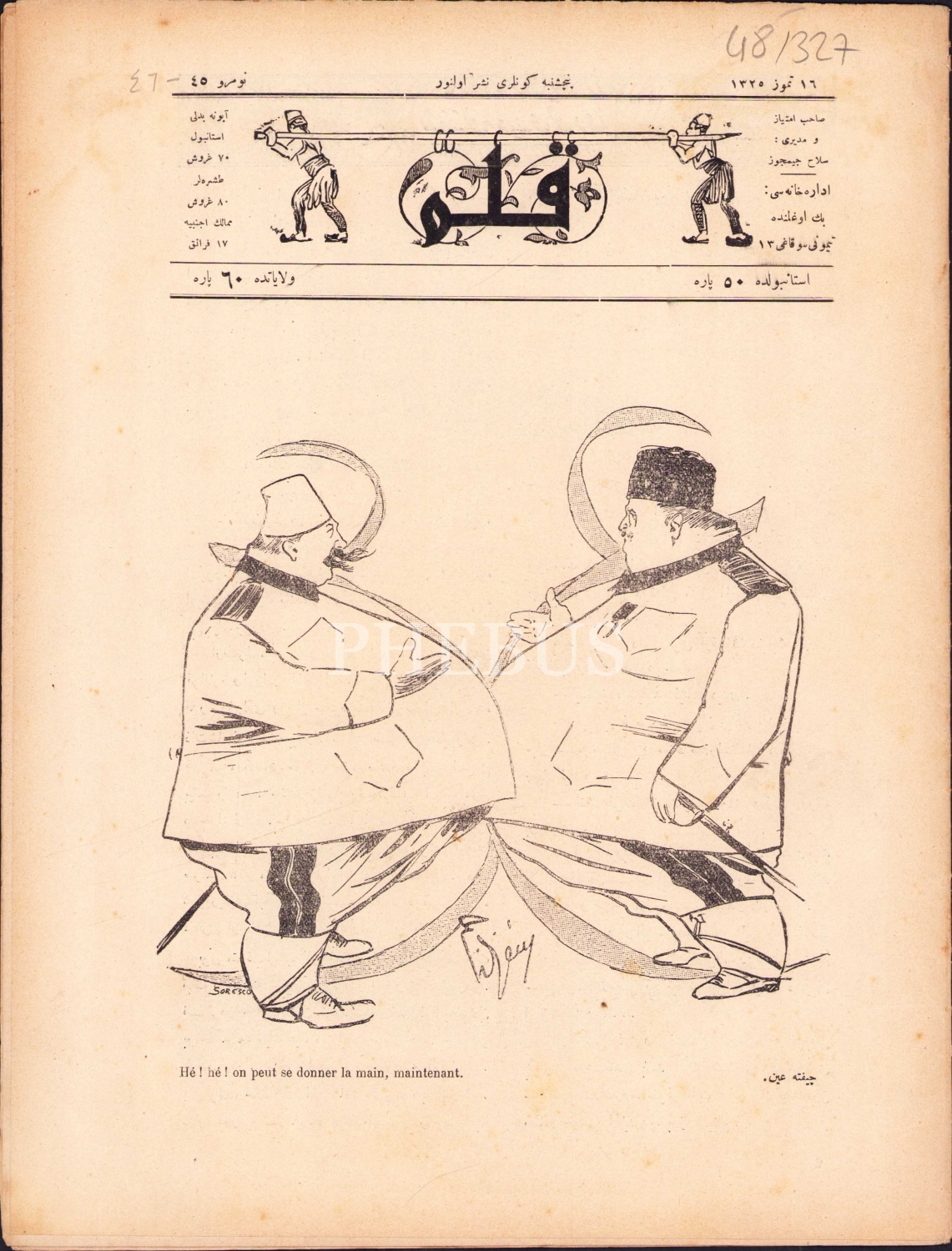 Osmanlıca Fransızca Kalem mecmuası, çizimler Cemil Cem, 1325, 18 sayfa, 23x30 cm
