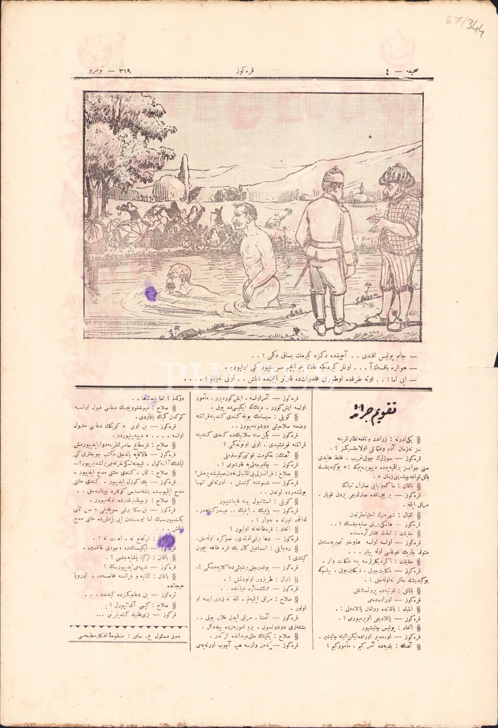 Osmanlıca Karagöz mizah gazetesi, 1327 tarihli, sahibi Ali Fuad, 4 sayfa, 28x40 cm