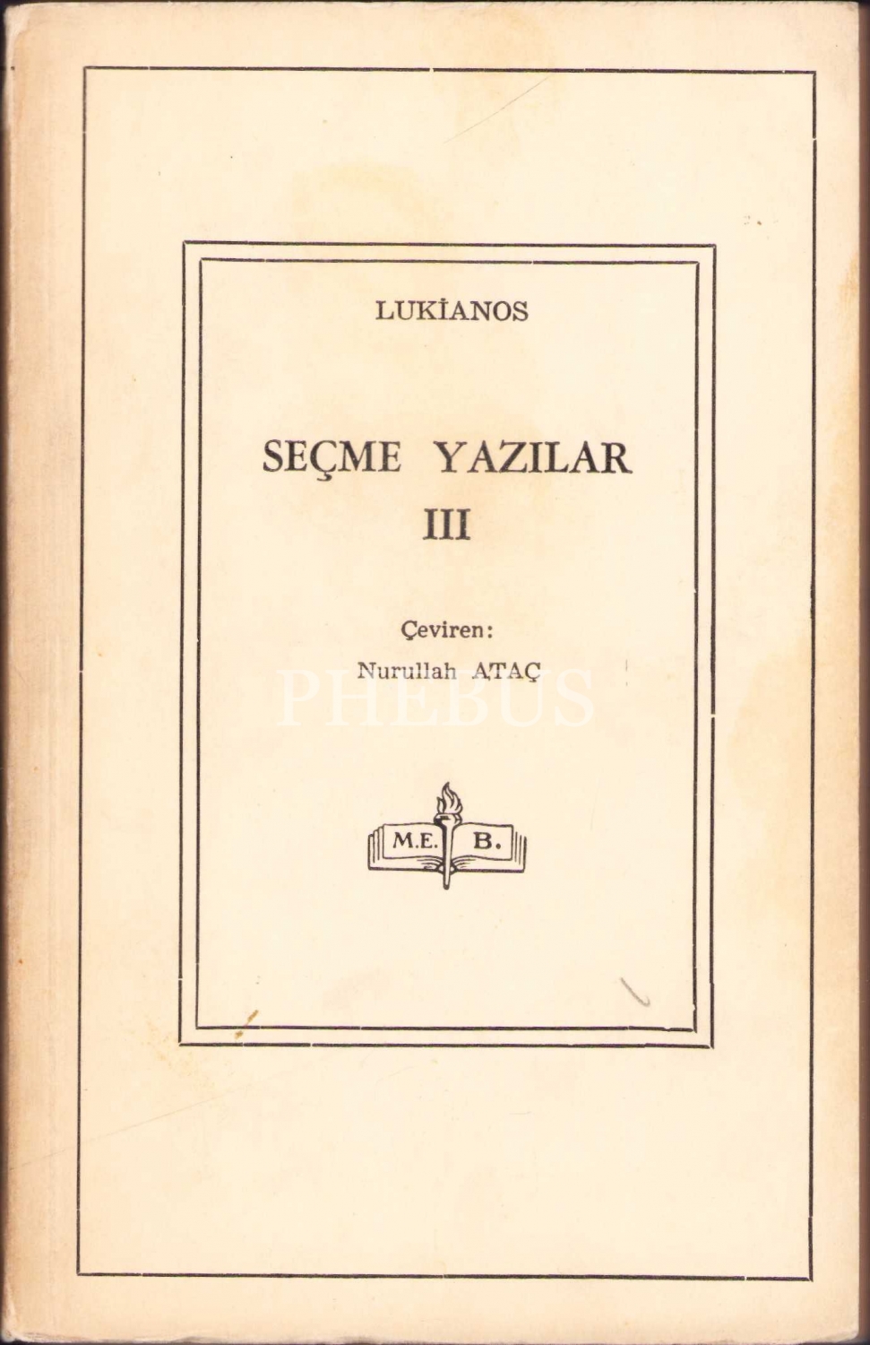Seçme Yazılar III, Lukianos, çev., Nurullah Ataç, Milli Eğitim Basımevi, İstanbul, 1949, 276 sayfa, 11x16 cm