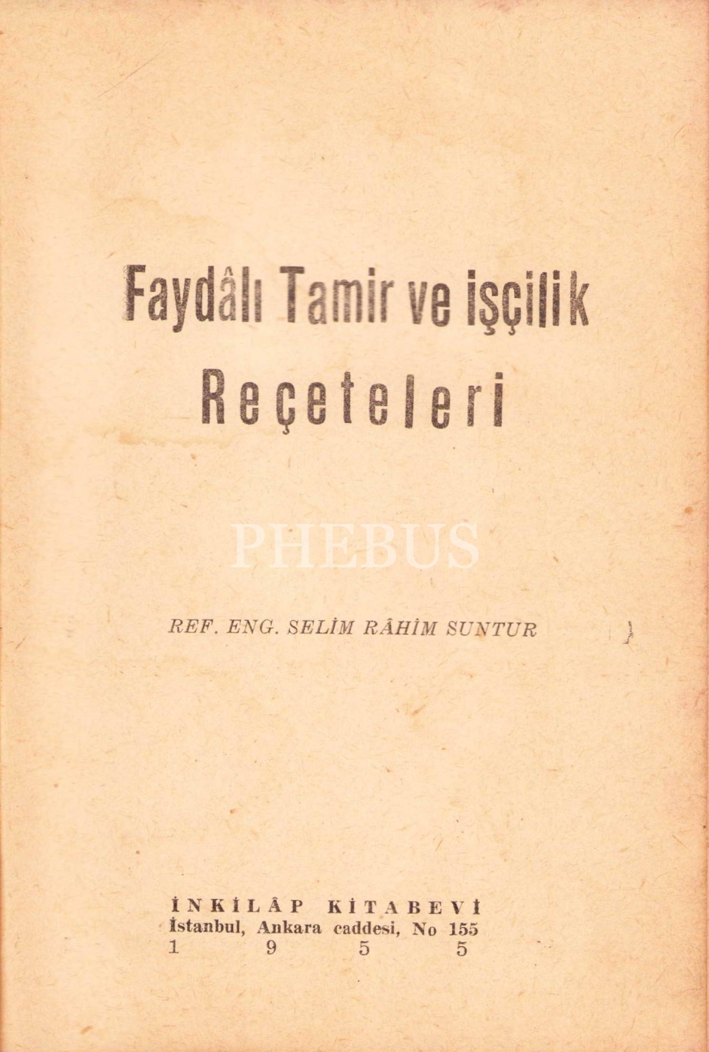 Faydalı Tamir ve İşçilik Reçeteleri, Selim Rahim Suntur, İstanbul, 1955, 256 sayfa, 13x18 cm