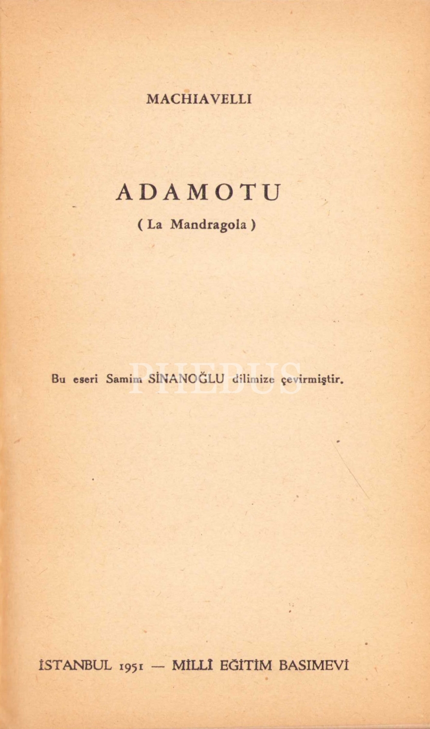 Adamotu, Machiavelli, çev., Samim Sinanoğlu, 70 sayfa, 10x15 cm