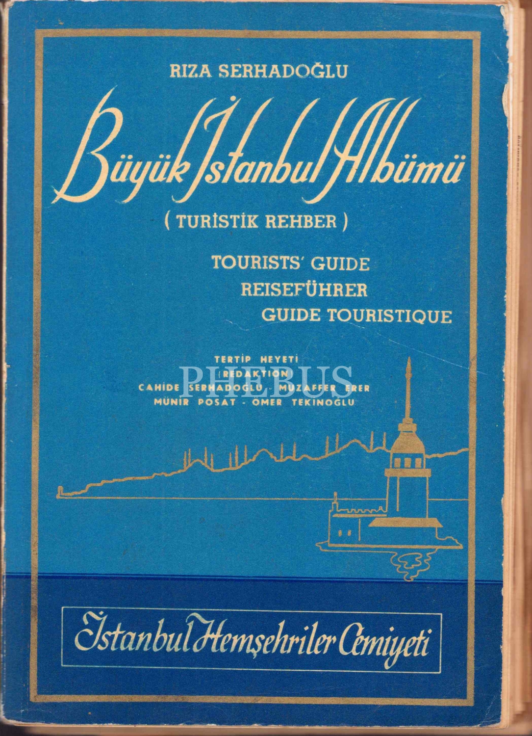 Büyük İstanbul Albümü - turistik rehber, Rıza Serhadoğlu, İstanbul Hemşeriler Cemiyeti, İstanbul, 1955, 2 kroki mevcut, sayfaların bazıları haliyle, 462 sayfa,15x23 cm