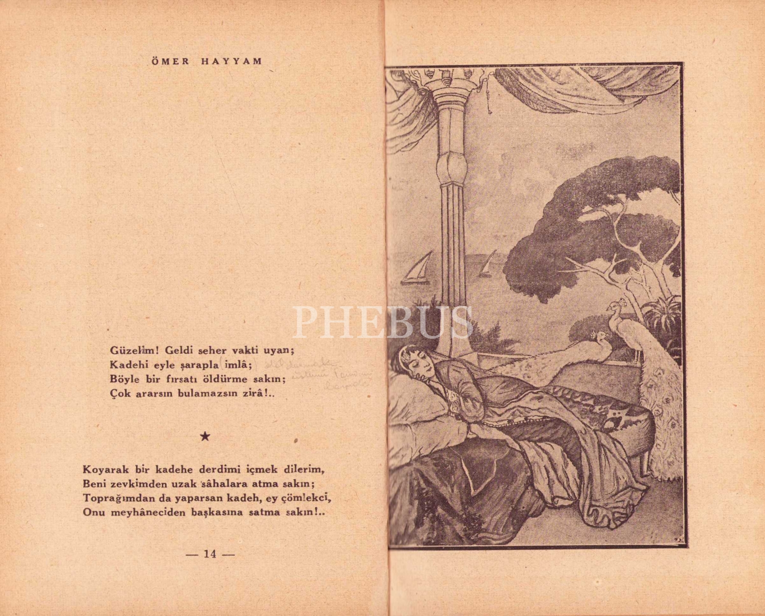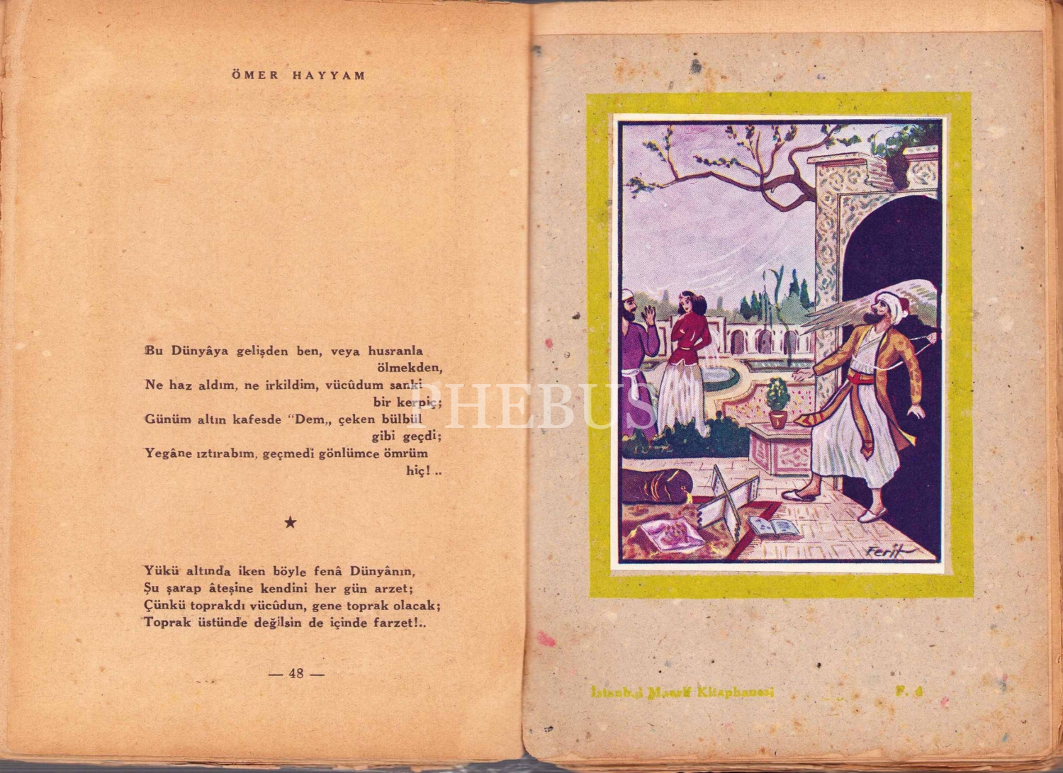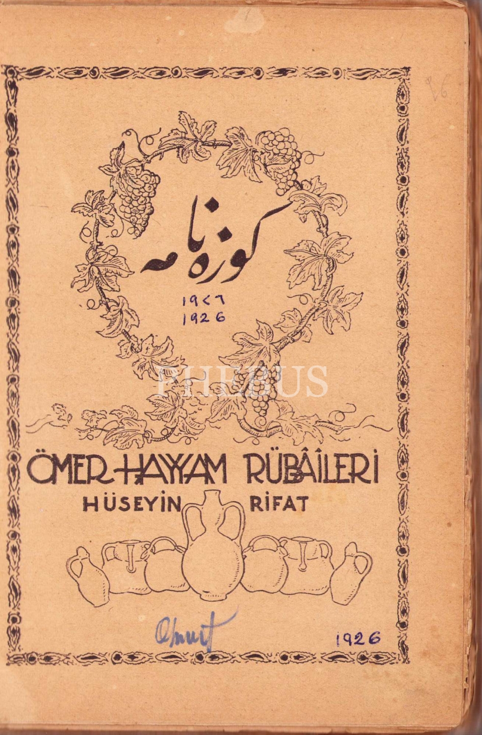 Latin harfleri ile ilk baskısı olan, Hüseyin Rıfat'ın hazırladığı şiir halinde ilk önemli çeviri Ömer Hayyam Rubaileri, Ahmet Kamil Anadolu Matbaası, resimli, 142 sayfa, 13x19 cm