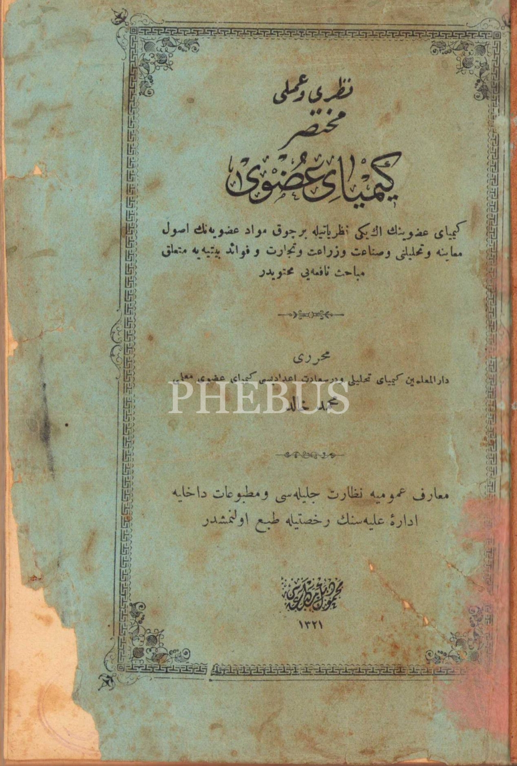 Osmanlıca Nazari ve Ameli Muhtasar Kimya ve Uzvi, Mehmed Halid, Mahmud Bey Matbaası, 1320, 408 sayfa, 13x19 cm, ÖZEGE; 15218