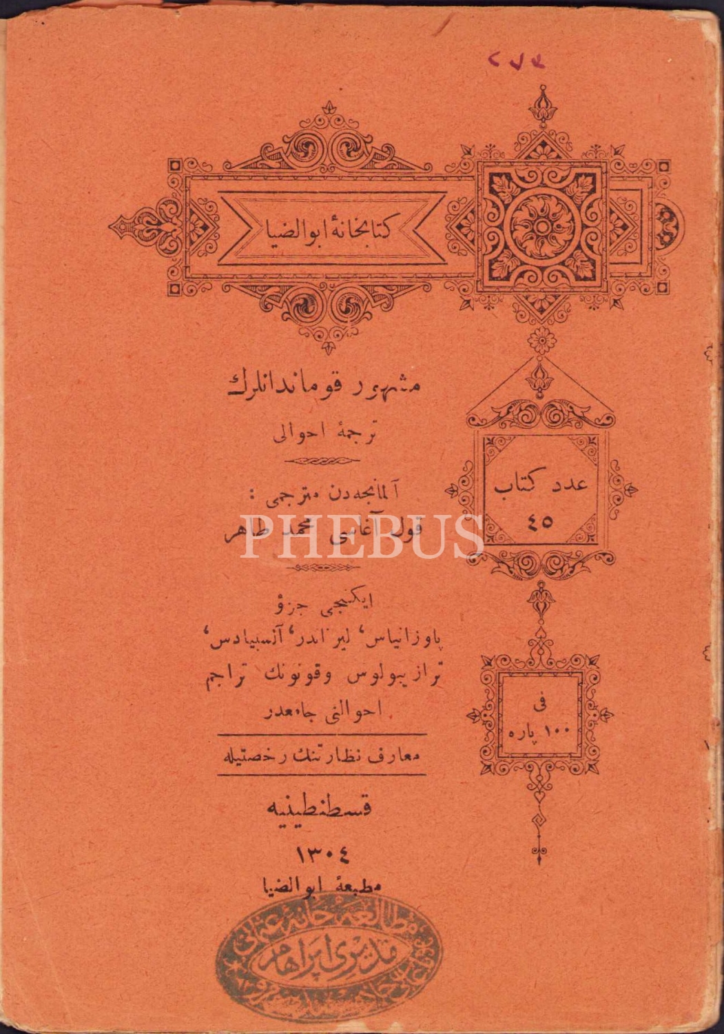 Osmanlıca Meşhur Kumandanların Tercüme-i Ahvali, Cornelius Nepos, çev., Mehmed Tahir, 2. cüz, Matbaa-i Ebuzziya, 1304, 66 sayfa, 10x14 cm