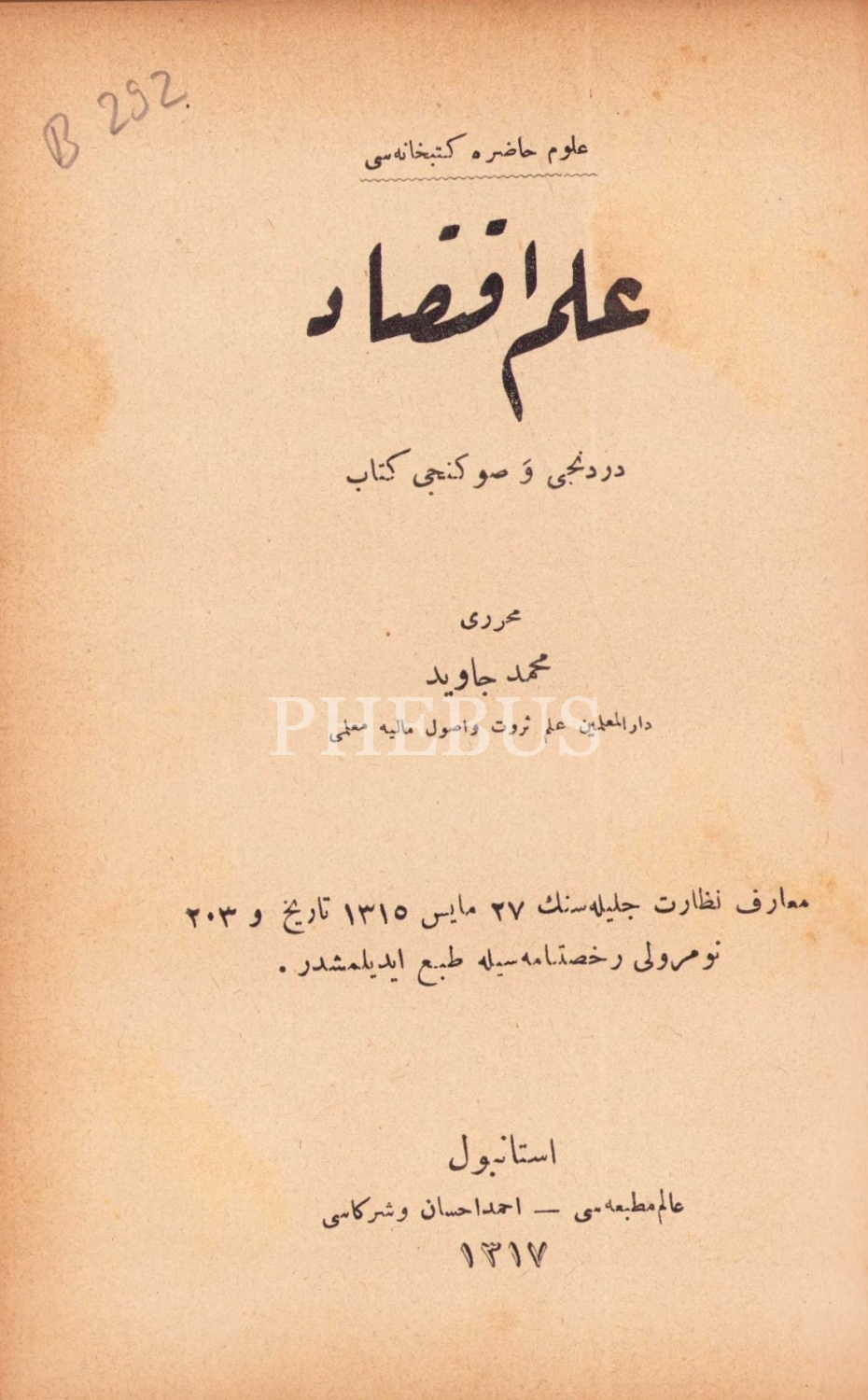 Osmanlıca İlm-i İktisad - 3. ve 4. kitap, Mehmed Cavid, Karabet Matbaası, 1316 / Alem Matbaası, 1317, kapak haliyle, 677 sayfa, 13x18 cm