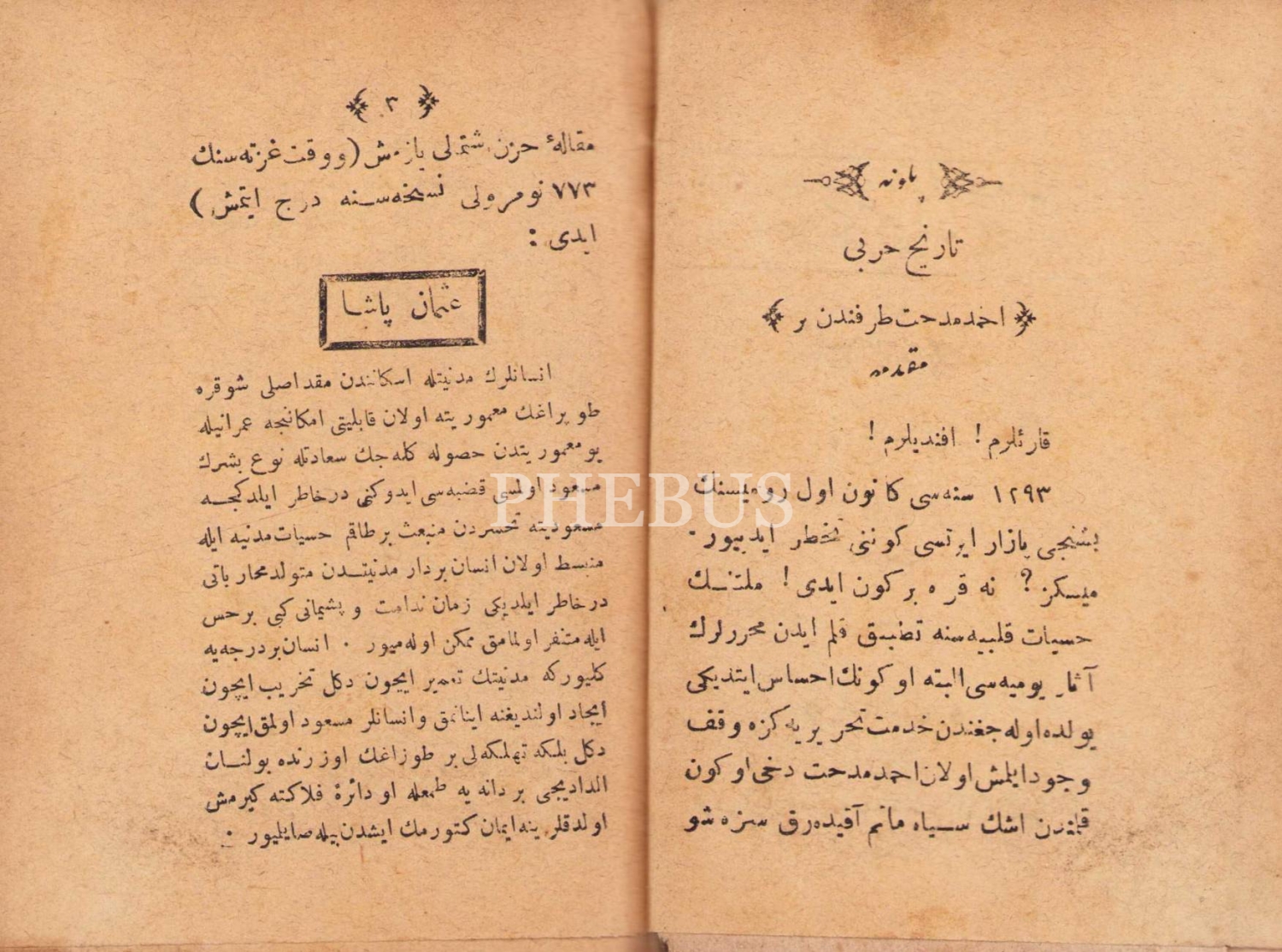 Osmanlıca Plevne Tarih-i Harbi, Talat, Kırık Anbar Matbaası, İstanbul, 1296, 960 sayfa, 9x14 cm