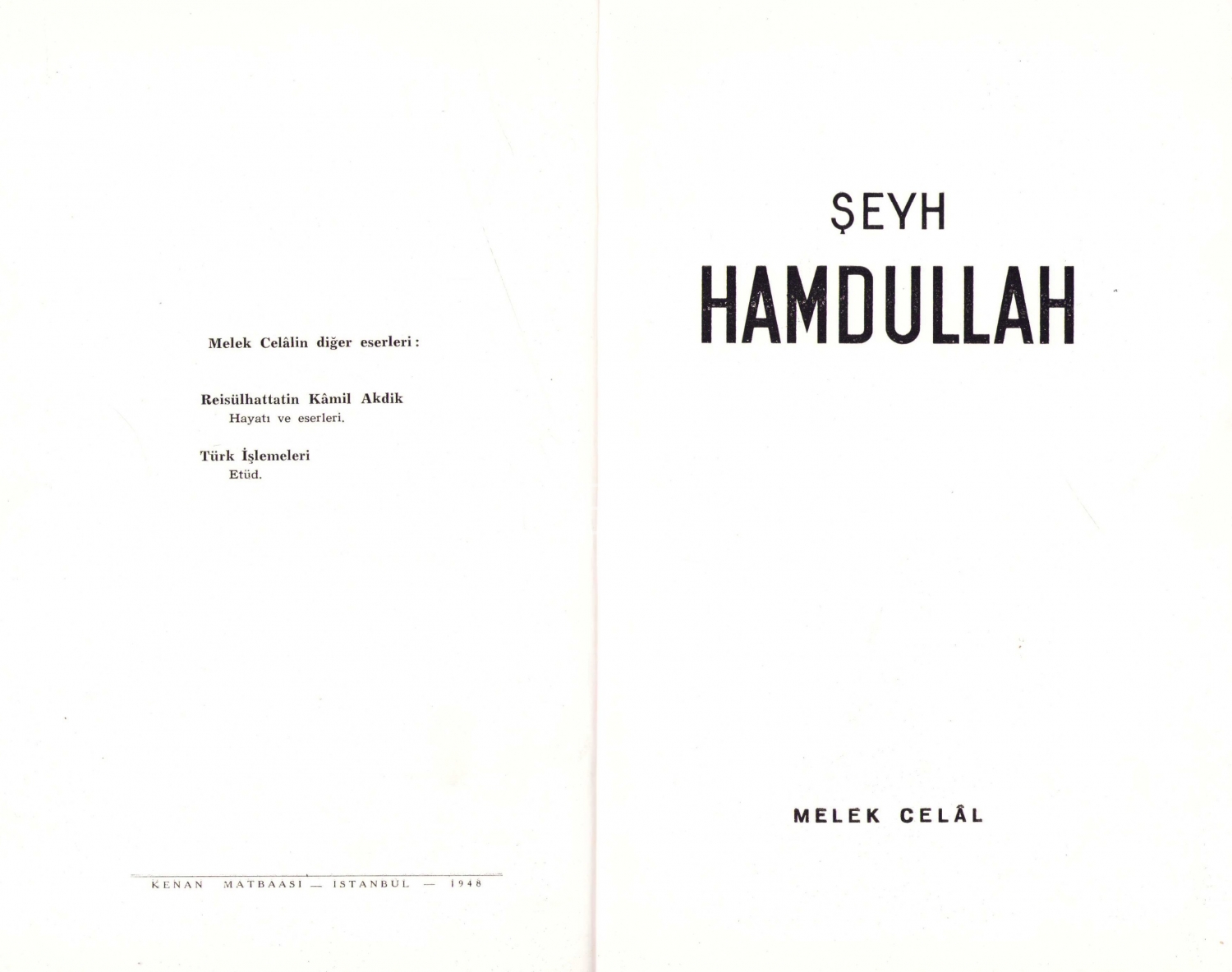 Şeyh Hamdullah, Melek Celal, Kenan Matbaası, İstanbul, 1948, 34 sayfa, 16x23cm