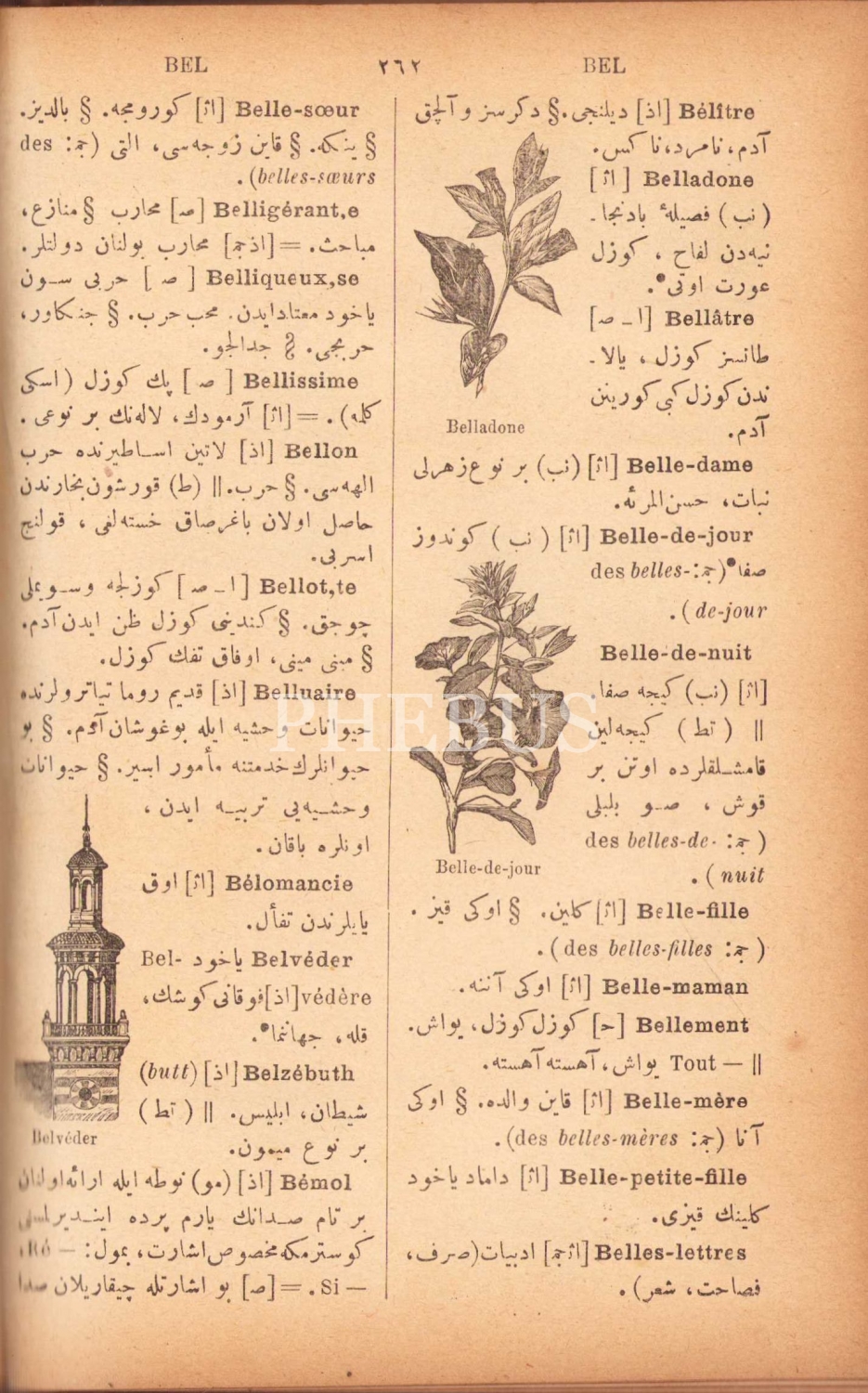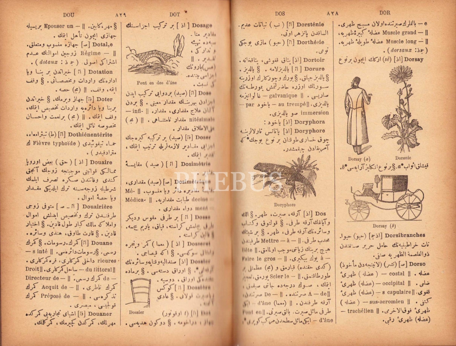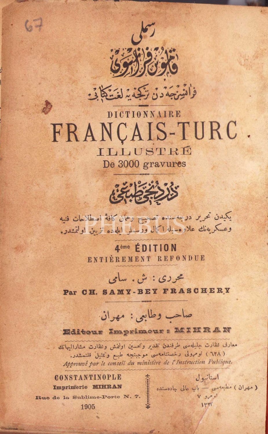 Osmanlıca Resimli Kamus-ı Fransevi - Fransızcadan Türkçeye Lügat Kitabı, dördüncü baskı, Şemsettin Sami, Mihran Matbaası, 1905, resimli, 2240 sayfa, 13x19 cm