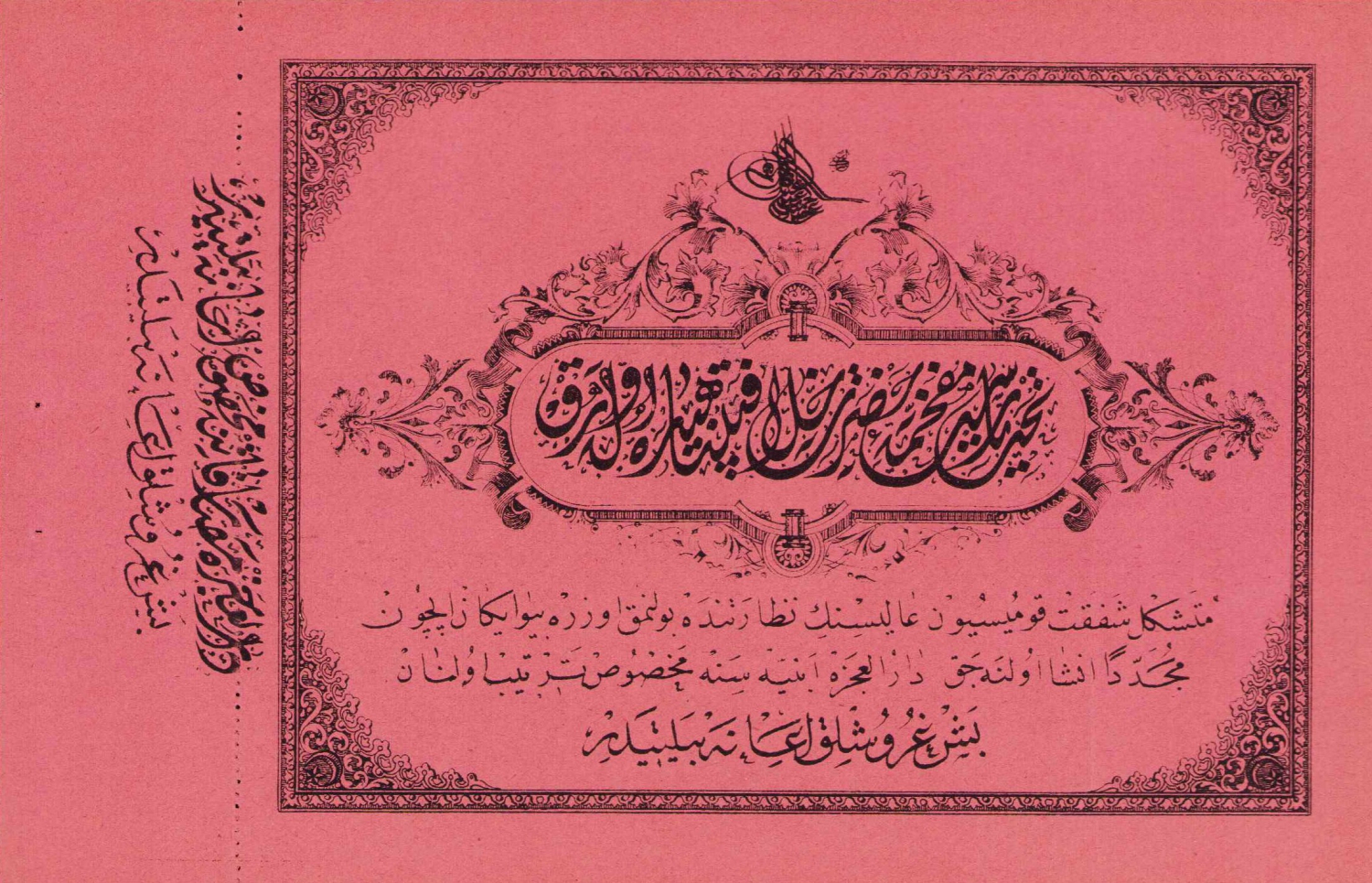 Darülaceze Binası 5 kuruşluk iane bileti, Osmanlıca, 19x12cm