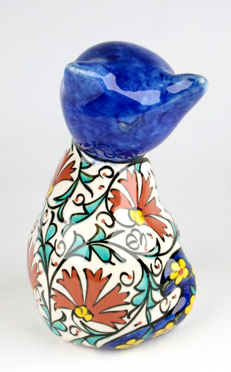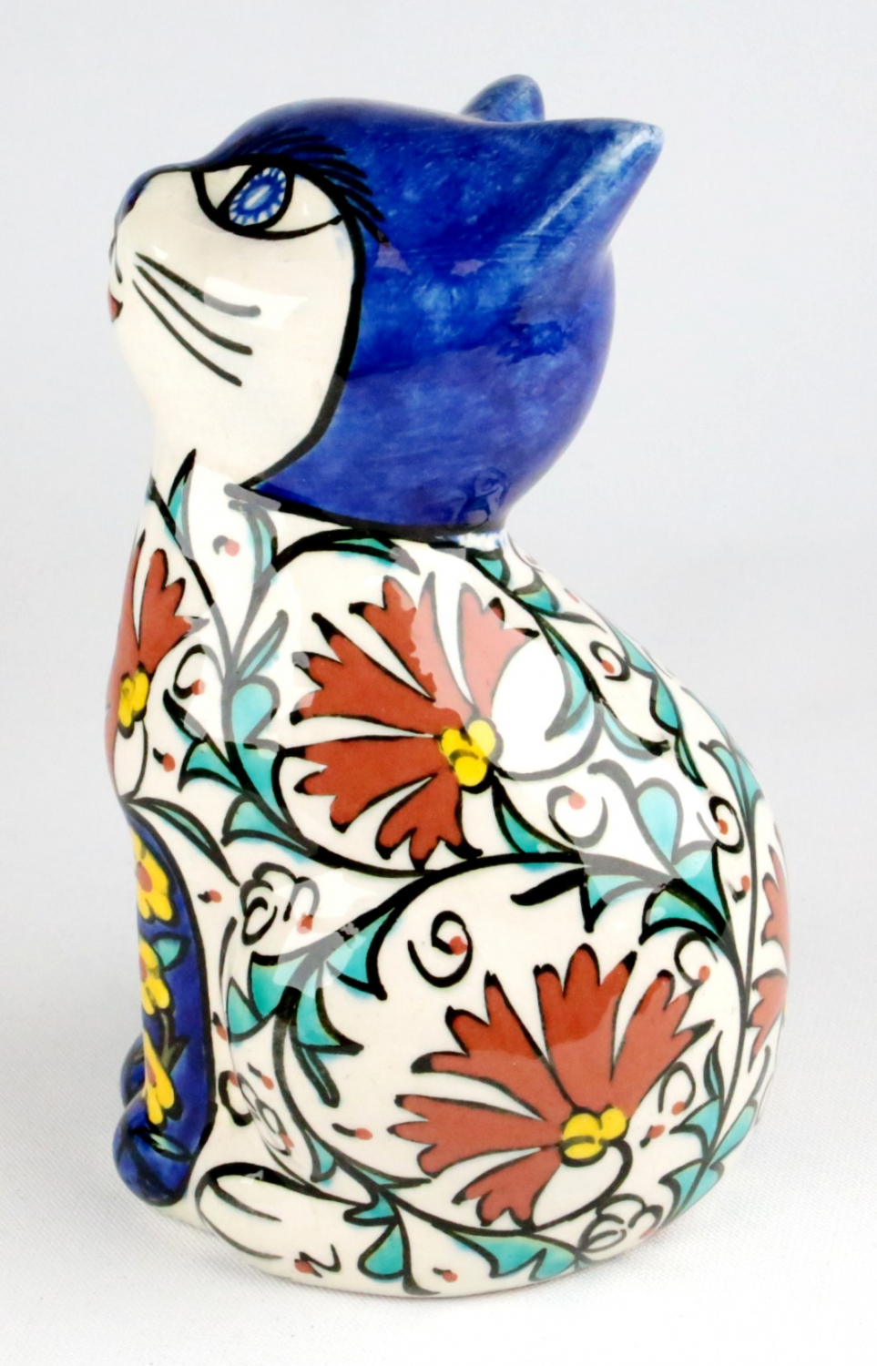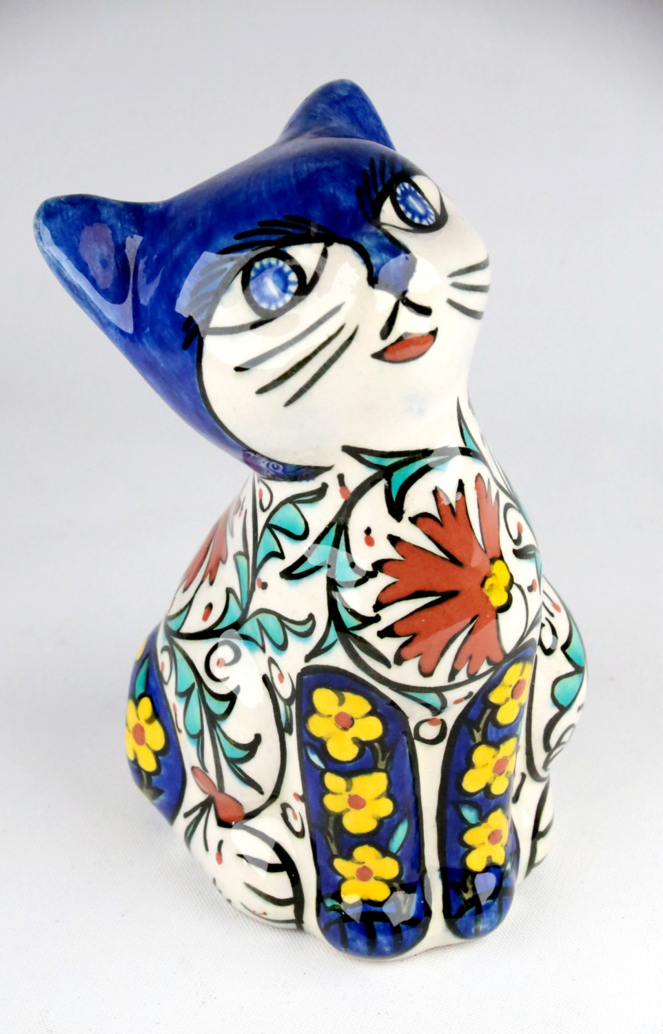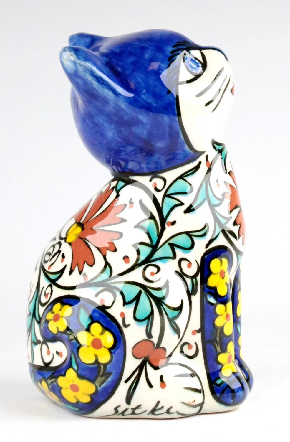 Sıtkı Olçar imzalı Kütahya seramik kedi biblosu, 14x7 cm
